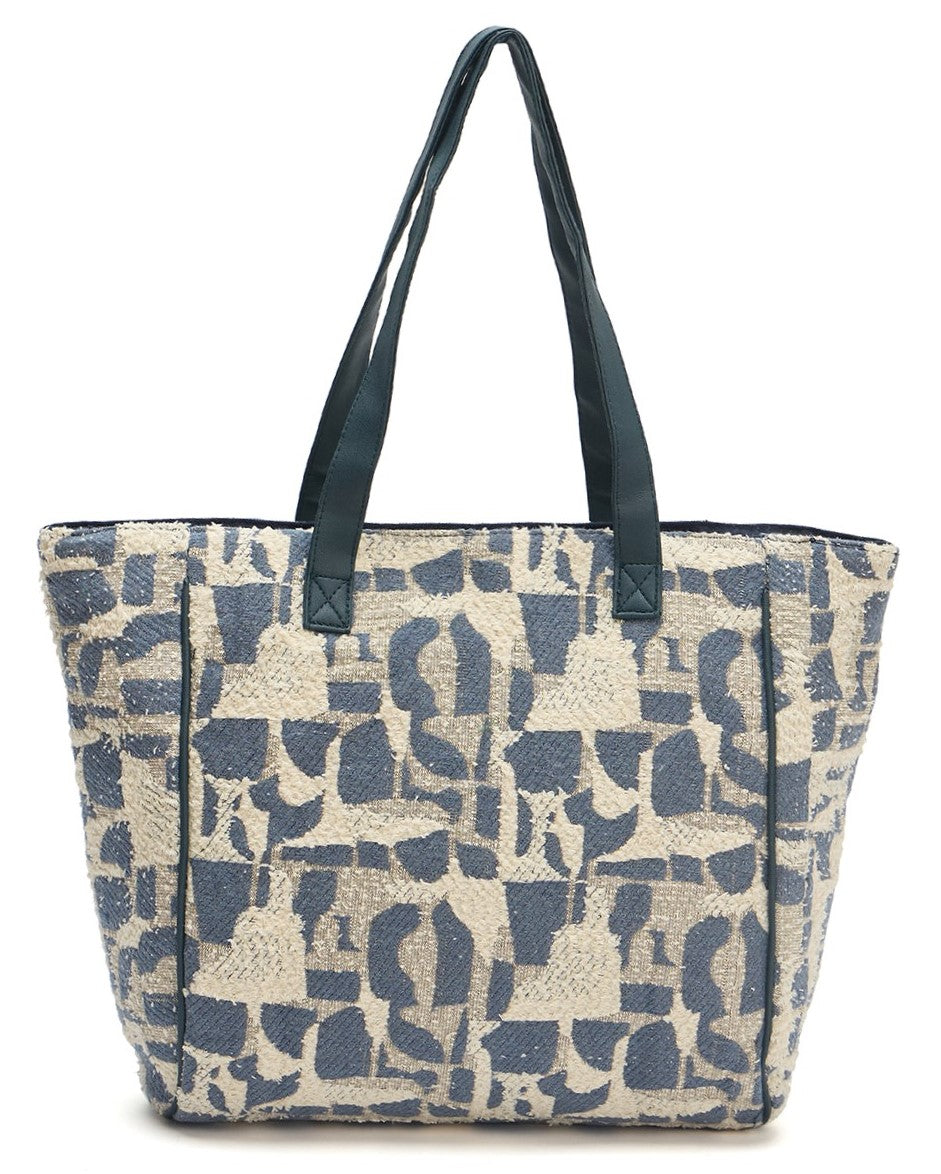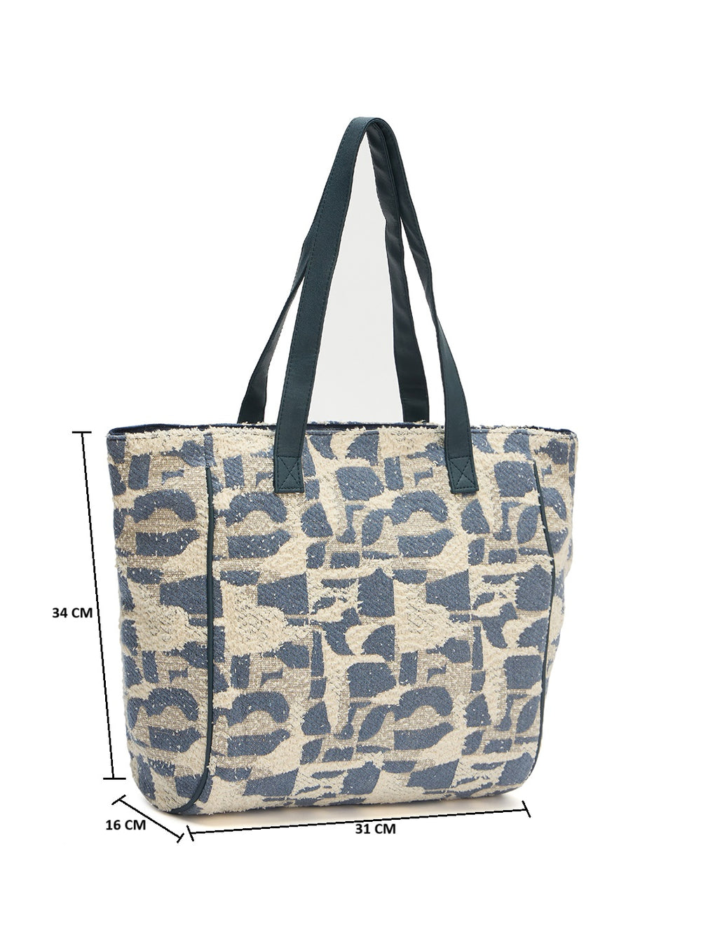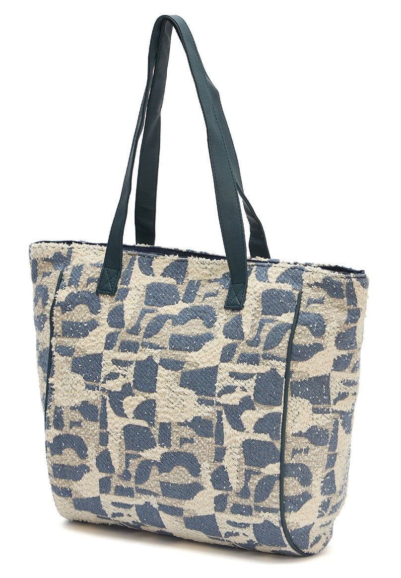 Canvas Tote Bag, Abstract Pattern Print, Grey and Beige, Large Shoulder Straps
