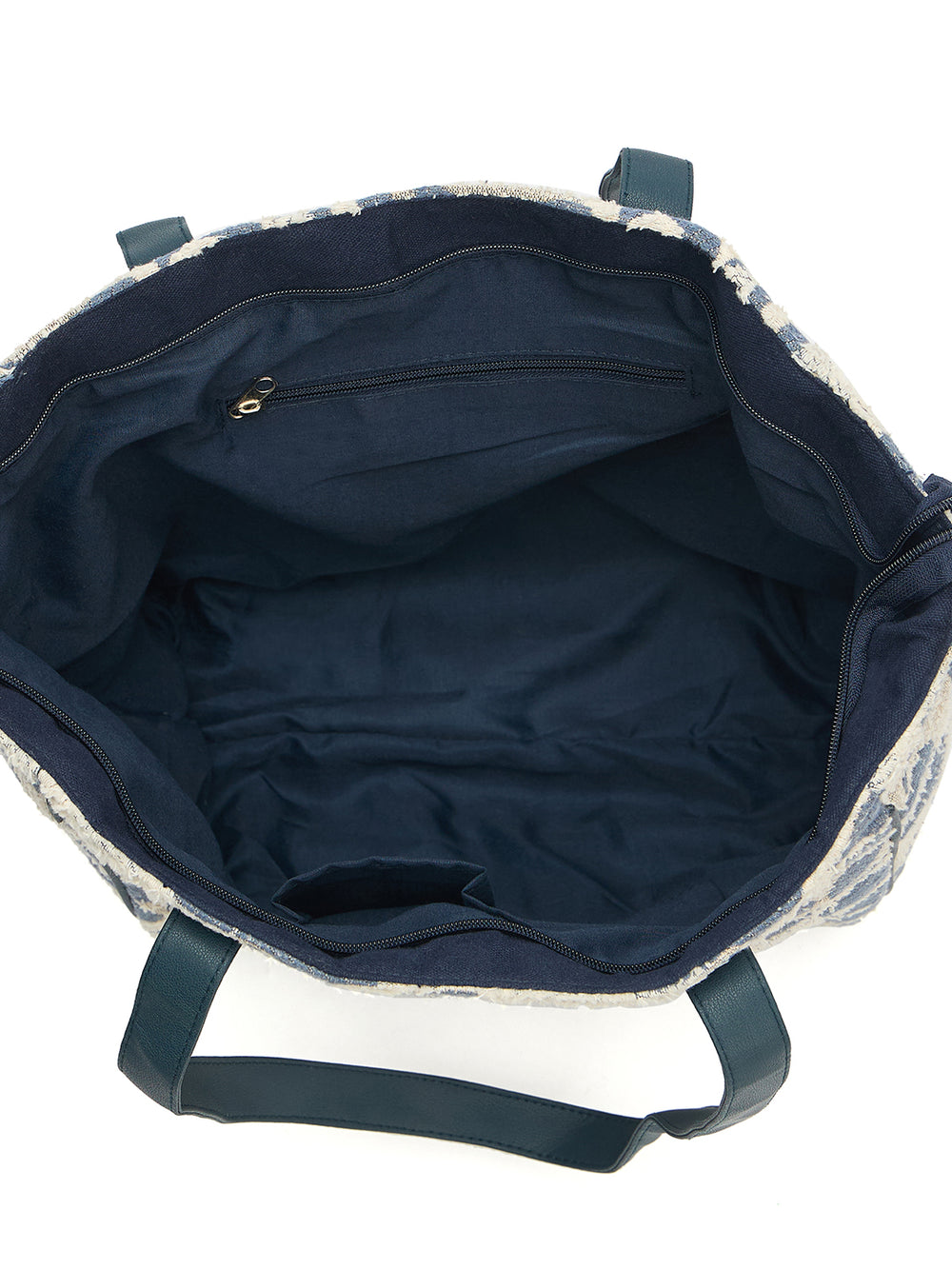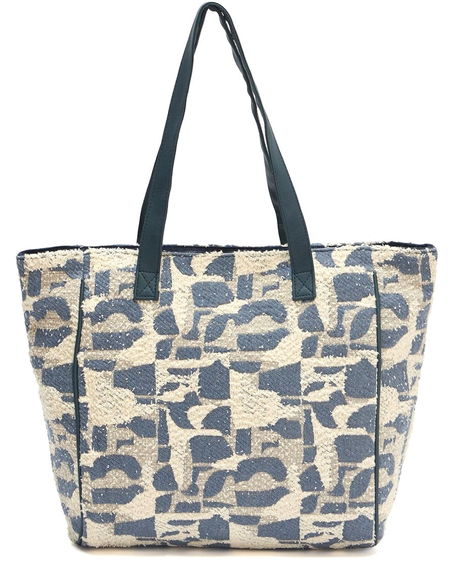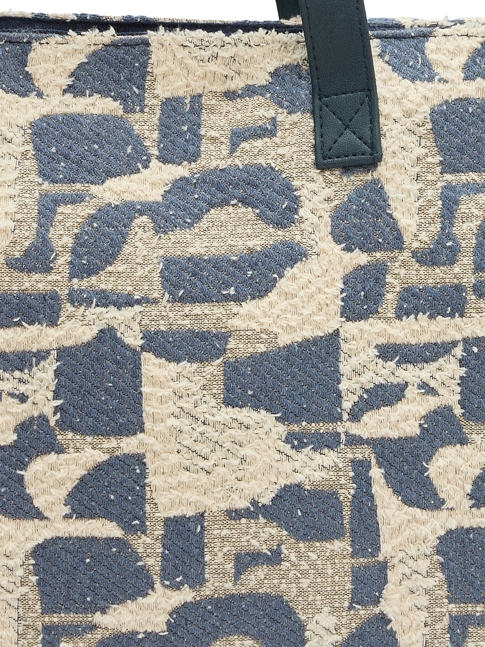 Canvas Tote Bag, Abstract Pattern Print, Grey and Beige, Large Shoulder Straps