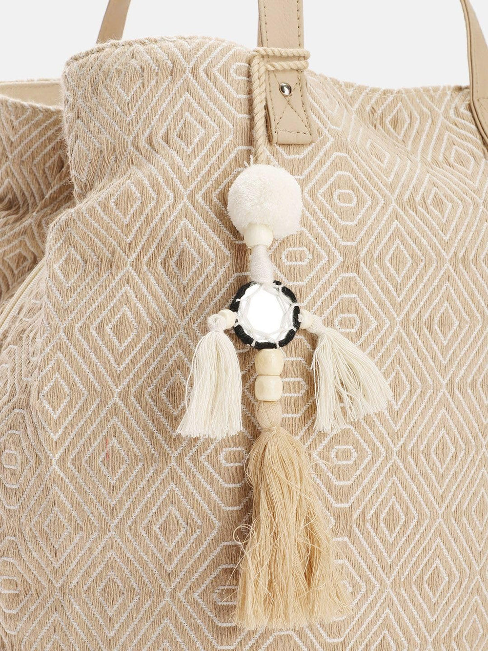 This stylish tote bag is a perfect accessory for the modern woman. Crafted with a geometric diamond pattern, it exudes sophistication and elegance. The spacious interior offers ample room for your daily essentials, while the sturdy handles ensure comfortable carrying. A playful tassel charm adds a touch of whimsy, elevating the overall design. Versatile and chic, this tote complements both casual and formal outfits, making it an indispensable addition to your wardrobe. Embrace timeless style and practicality with this meticulously crafted bag.