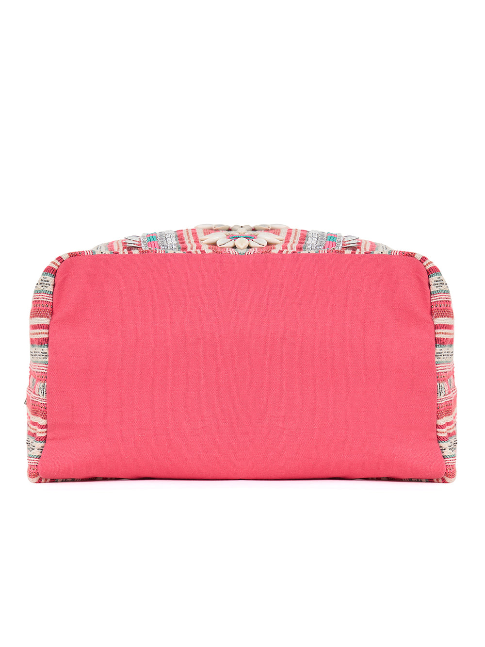 • DESIGN FEATURES: Beautifully crafted beach tote with pink and white striped pattern, adorned with decorative shell flower embellishments and turquoise accent stripes