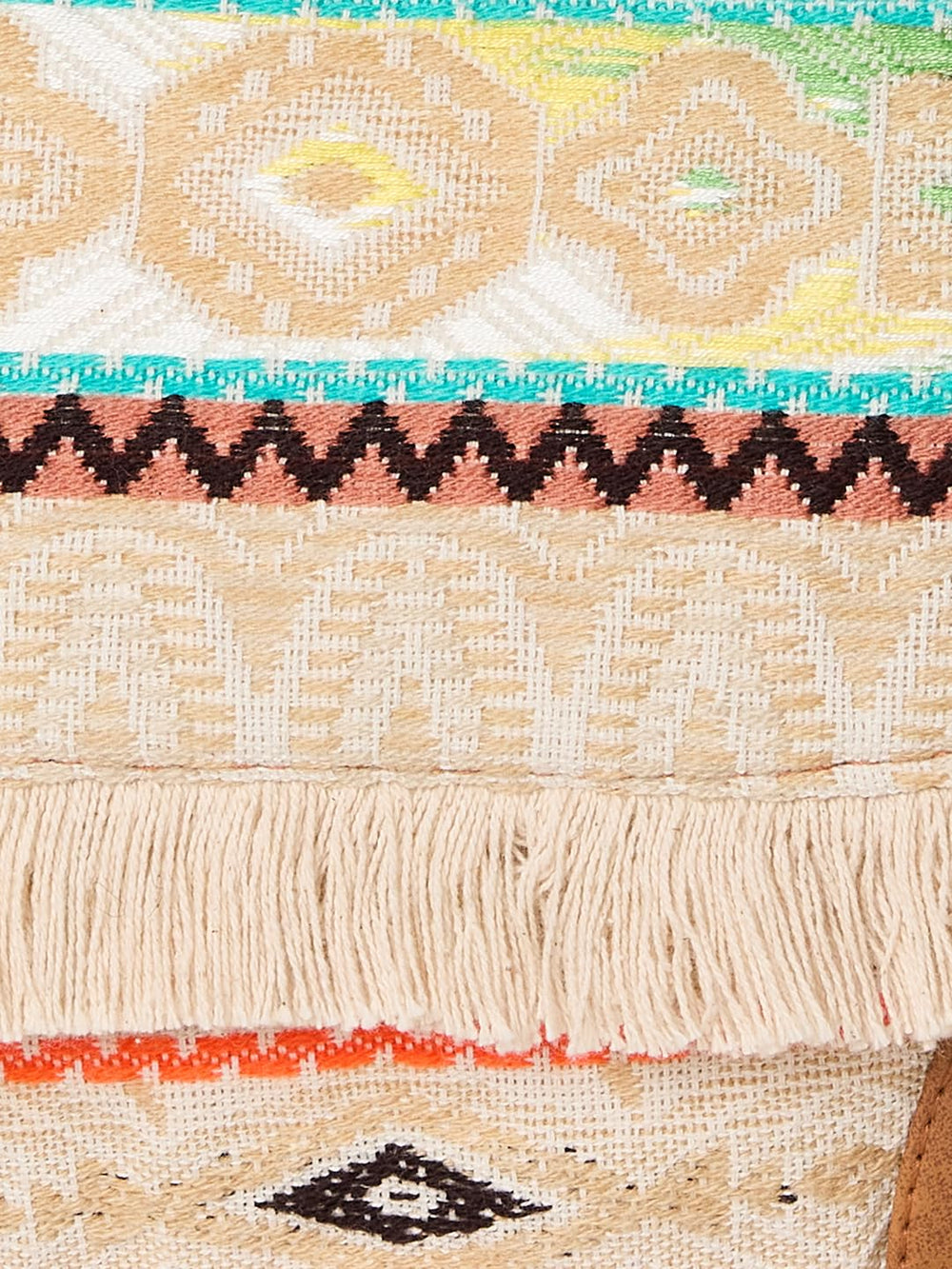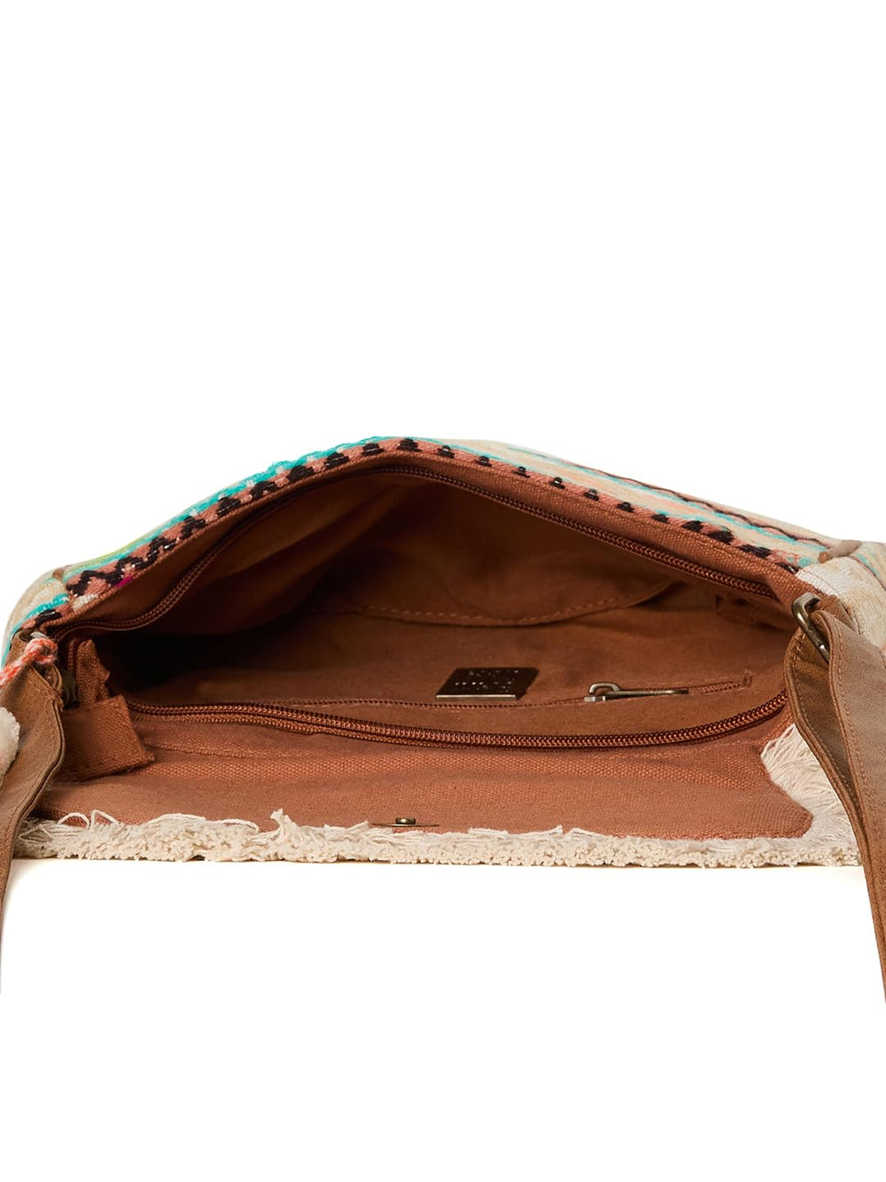 Elevate your style with this exquisite handcrafted handbag from India. Featuring a stunning blend of vibrant colours and intricate patterns, this bag exudes a bohemian flair that is sure to turn heads. The fringe detailing adds a touch of playfulness, while the tassels and beaded accents lend an air of sophistication. Crafted from high-quality materials, this handbag is not only aesthetically pleasing but also durable and practical. The adjustable strap allows for comfortable carrying, and the spacious interior provides ample room for your essentials. Whether you're attending a casual gathering or a formal event, this versatile handbag will complement your ensemble perfectly. Embrace the rich cultural heritage and artistry of India with this one-of-a-kind accessory.