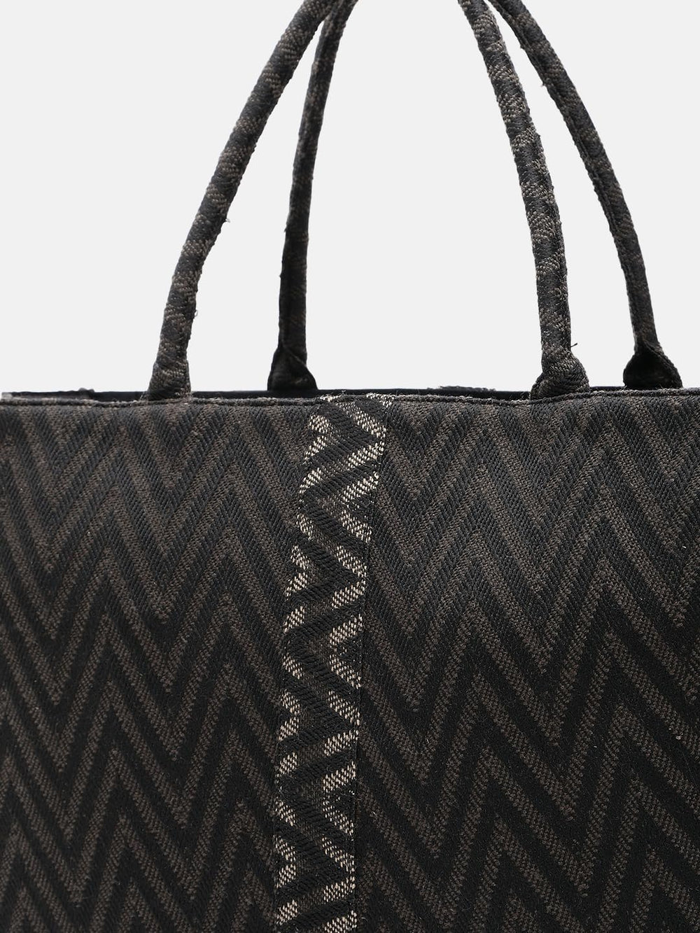 This chic handbag for women exudes sophistication with its sleek and structured design. Crafted from high-quality materials, it features a chevron pattern woven into the fabric, lending a touch of texture and visual interest. The spacious interior offers ample room for your daily essentials, while the sturdy handles ensure a comfortable grip. Whether you're heading to the office or a night out, this versatile bag will effortlessly elevate your ensemble. Measuring 41 cm in length, 31 cm in height, and 15 cm in depth, it strikes the perfect balance between style and functionality. Embrace timeless elegance with this fashionable accessory.