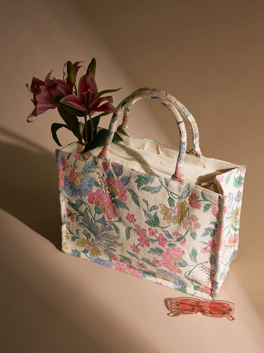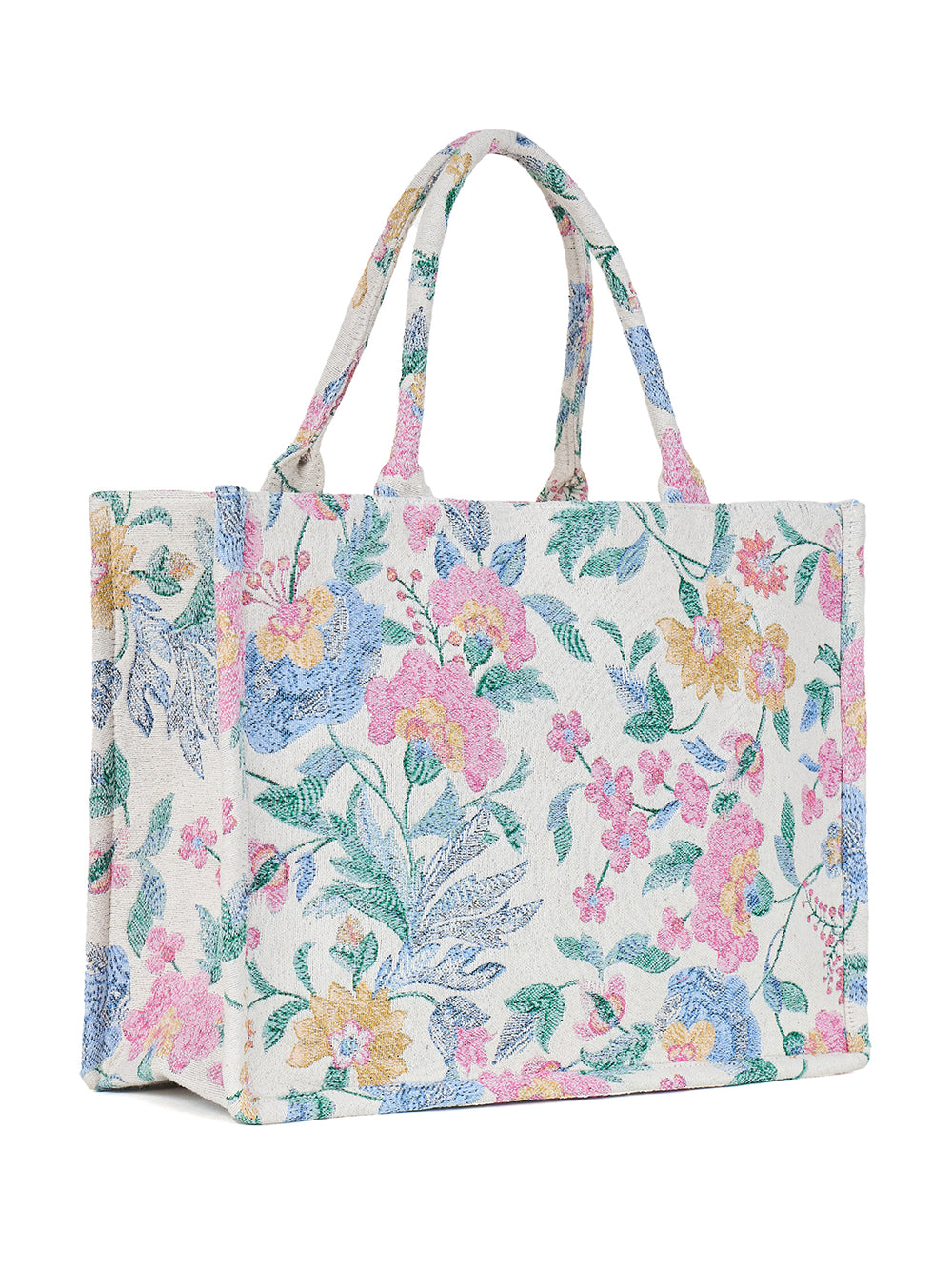 PRIMROSE Floral Canvas Tote Bag, Cotton Material, Pink Blue Yellow Pattern, Spacious Design,Double Handle