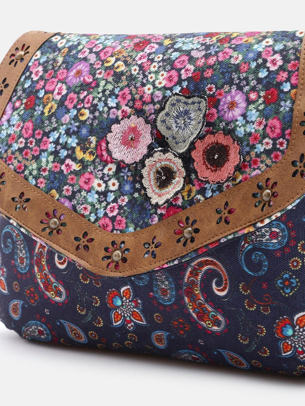 Immerse yourself in the vibrant and intricate beauty of this handcrafted handbag. Meticulously embellished with a kaleidoscope of floral patterns and paisley motifs, it exudes an enchanting fusion of traditional artistry and contemporary style. The main body features a captivating tapestry of blooms in shades of pink, yellow, and red, intricately woven into a canvas of earthy tones. Complementing this floral splendour are the tan leather accents adorned with delicate cutwork, adding a touch of rustic charm. The navy base showcases an alluring paisley print, further elevating the bag's visual allure. Crafted with utmost care, this handbag is a true testament to the skilled artisans who have poured their passion into every stitch. Embrace the essence of timeless elegance and make a statement with this exquisite accessory.