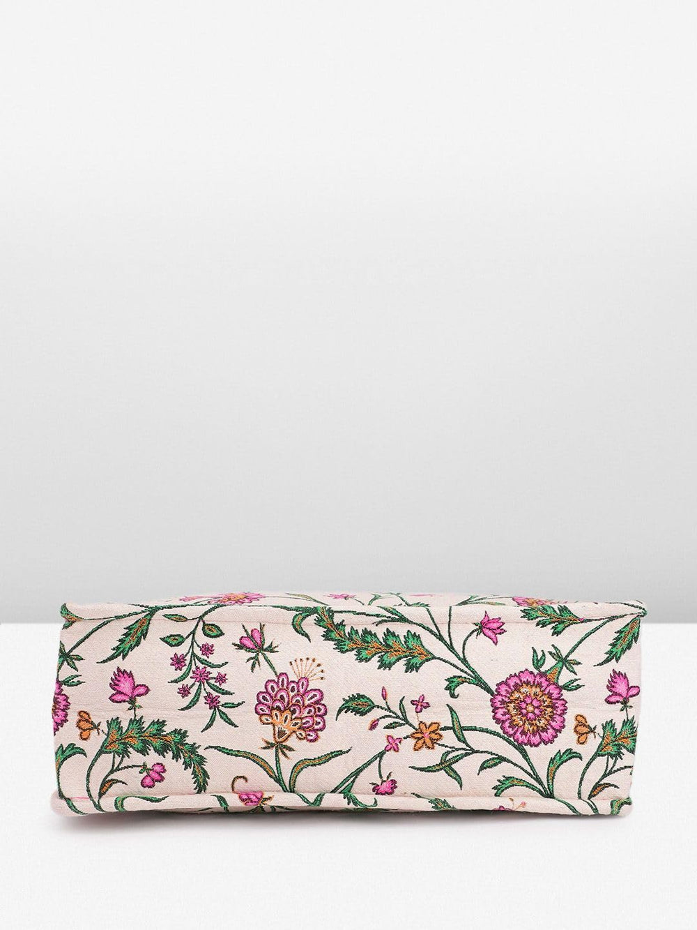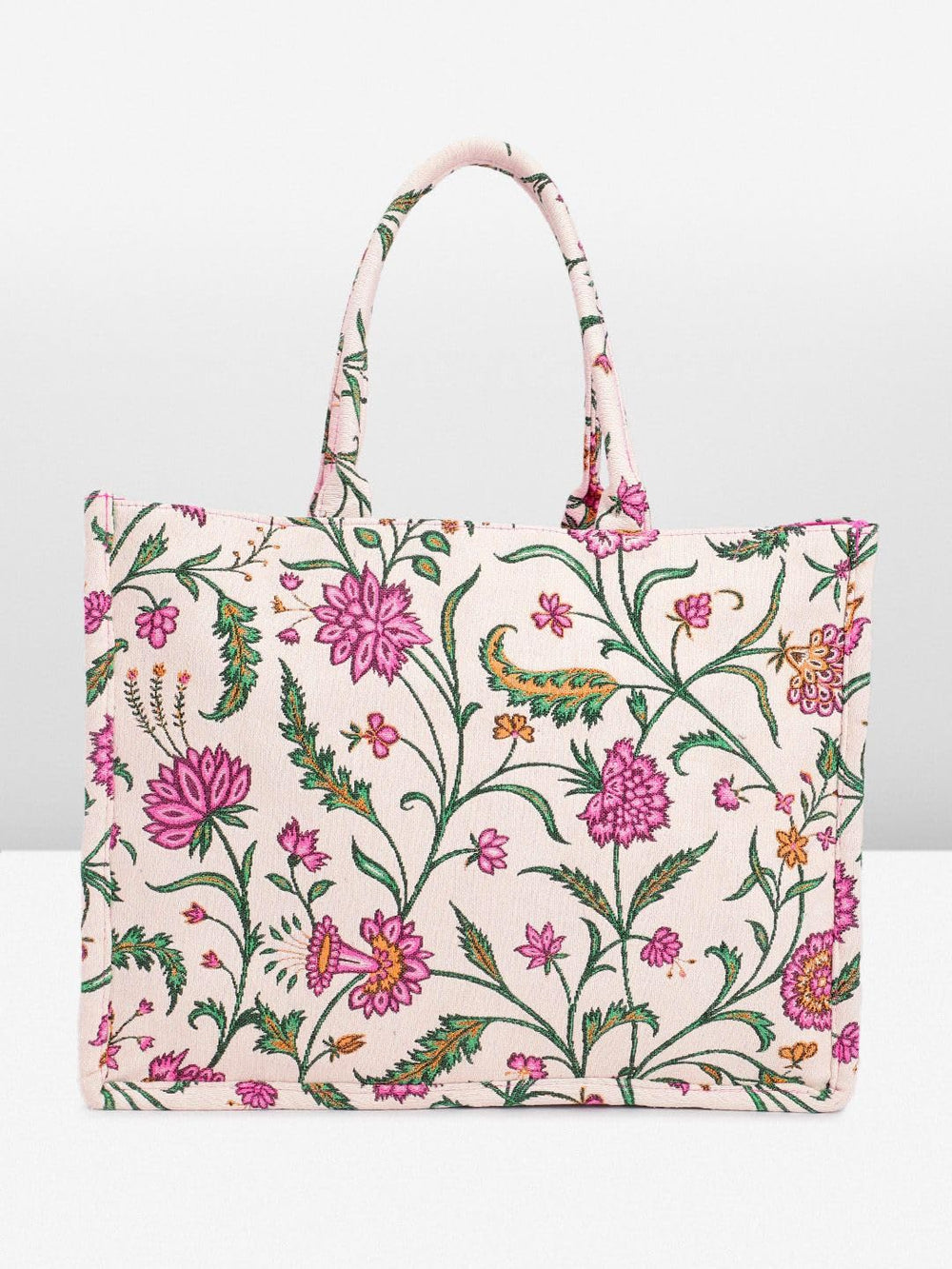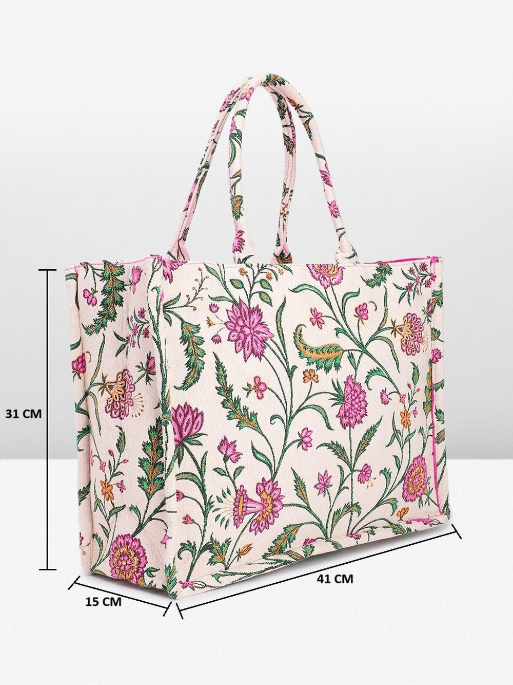 Elevate your style with this exquisite hand bag for women, featuring a captivating floral print that exudes elegance and sophistication. Crafted with meticulous attention to detail, this tote bag boasts a vibrant array of colours, from rich greens and pinks to warm oranges, intricately woven into a mesmerising pattern reminiscent of blossoming gardens. The spacious interior offers ample room for your daily essentials, while the sturdy construction ensures lasting durability. Whether you're attending a formal event or simply running errands, this hand bag will effortlessly complement your ensemble, adding a touch of refined charm to your overall look. Embrace the beauty of nature and indulge in the timeless allure of this floral masterpiece.