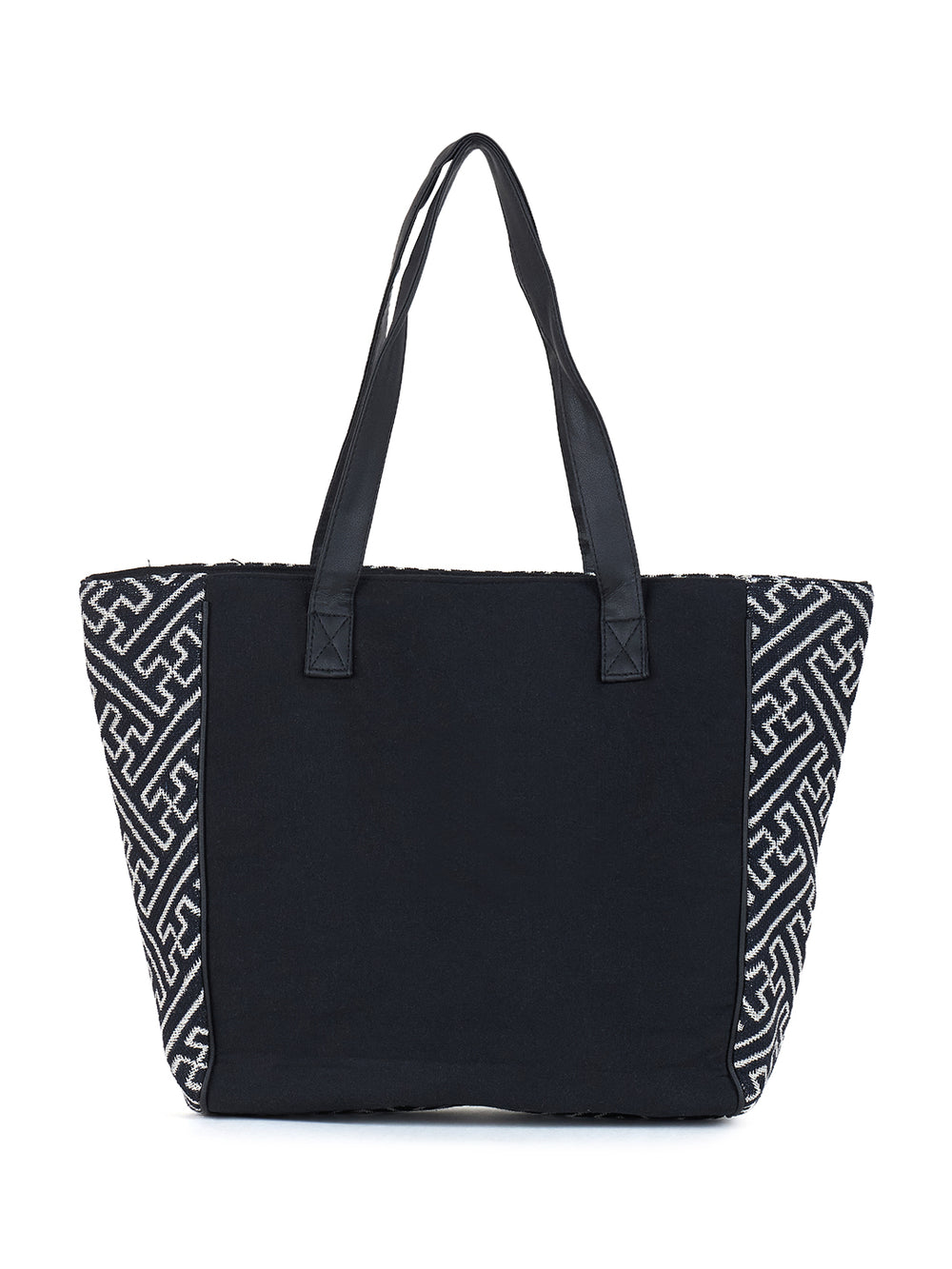 PRIMROSE Geometric Pattern Canvas Tote Bag, Black and White Design, Large Shoulder Shopper