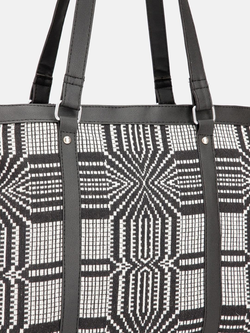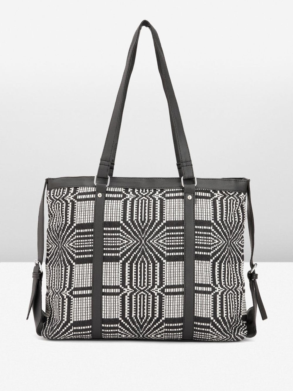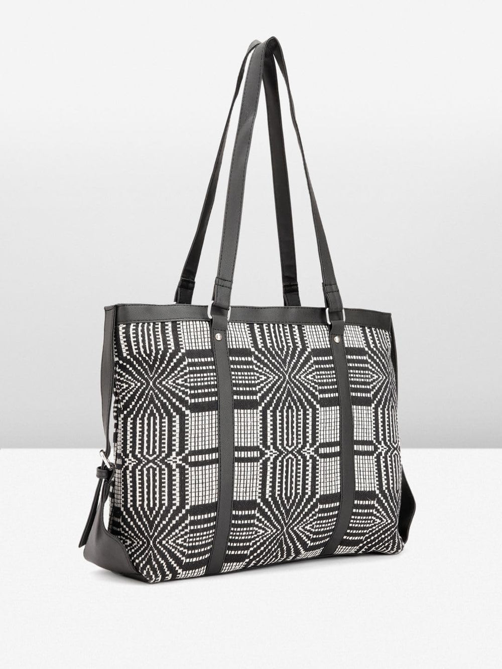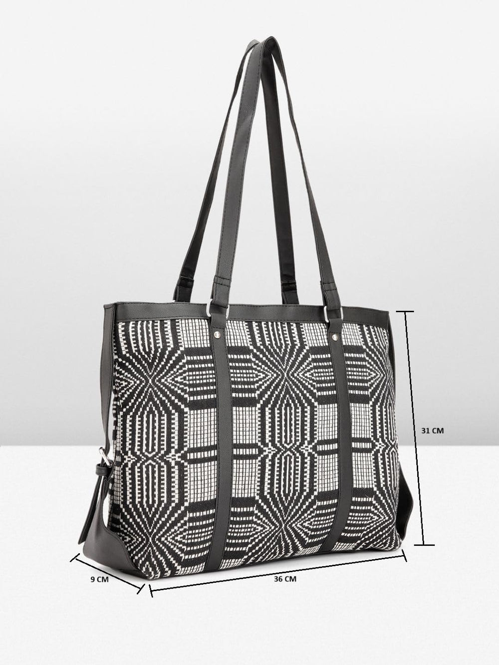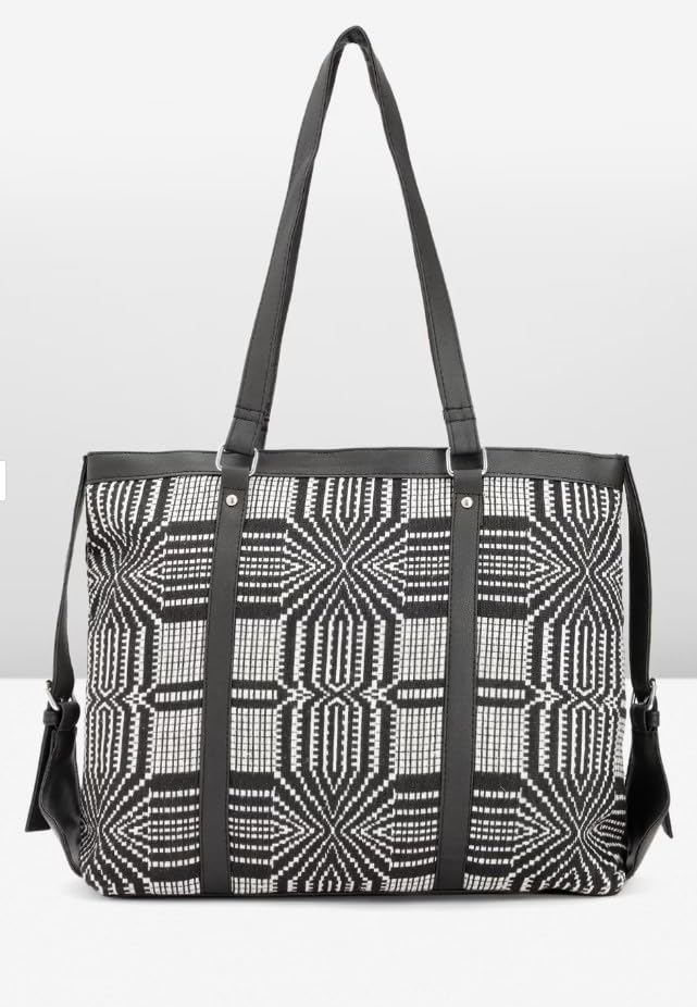 Elevate your style with this chic and versatile handbag for women. Crafted with a striking black and white geometric pattern, this tote effortlessly blends fashion and functionality. Its spacious interior offers ample room for all your essentials, while the sturdy handles provide comfortable carrying. Whether you're heading to the office or running errands, this handbag is the perfect companion, adding a touch of sophistication to any outfit. Embrace the perfect fusion of style and practicality with this must-have accessory.