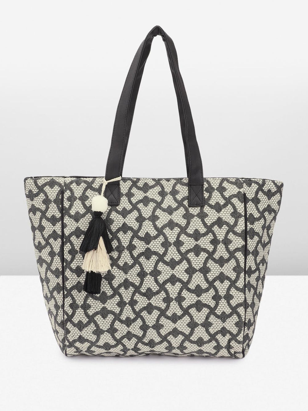 Elevate your style with this chic and versatile hand bag for women. Crafted with intricate woven patterns in contrasting black and beige hues, it exudes an effortless bohemian charm. The spacious interior offers ample room for all your daily essentials, while the adjustable shoulder strap ensures comfortable carrying. Accentuated with playful tassels that add a touch of whimsy, this hand bag is a statement piece that seamlessly transitions from day to night. Embrace the allure of timeless elegance and make a lasting impression wherever you go.