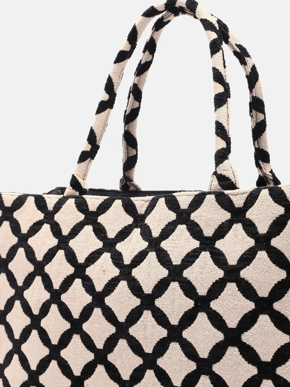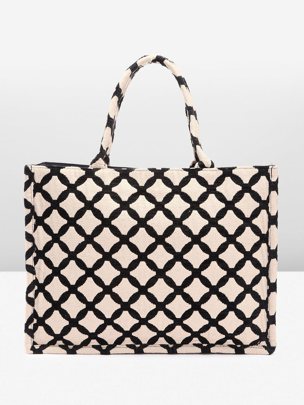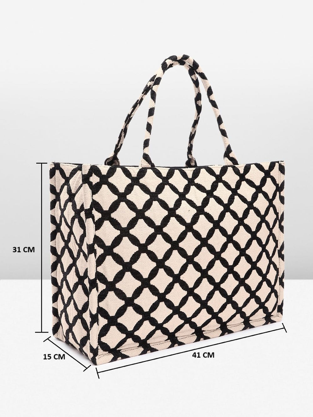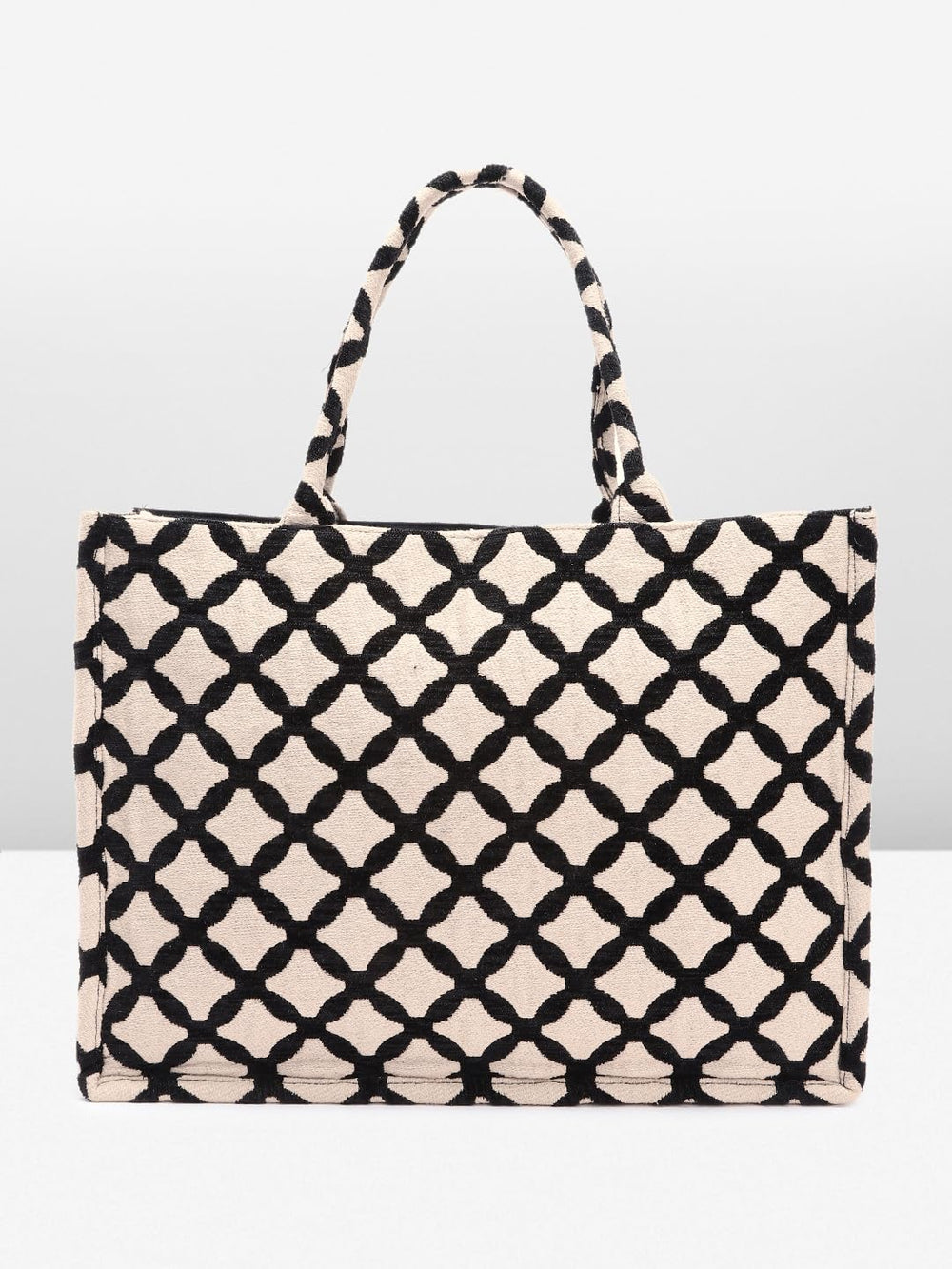 Elevate your style with this chic and versatile handbag. Crafted from high-quality materials, it boasts a striking black and beige diamond pattern that adds a touch of sophistication to any outfit. The spacious interior offers ample room for your daily essentials, while the sturdy handles provide a comfortable grip. Whether you're running errands or attending a casual gathering, this handbag is the perfect accessory to complement your look. Its timeless design ensures it will remain a staple in your wardrobe for seasons to come. Embrace effortless elegance and make a statement with this stylish and functional handbag.