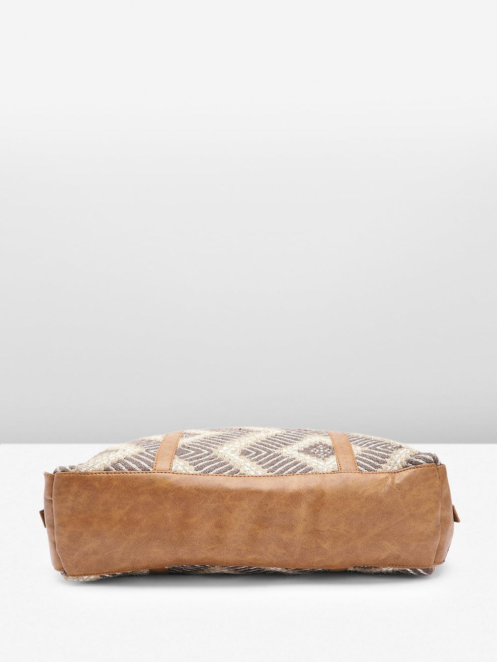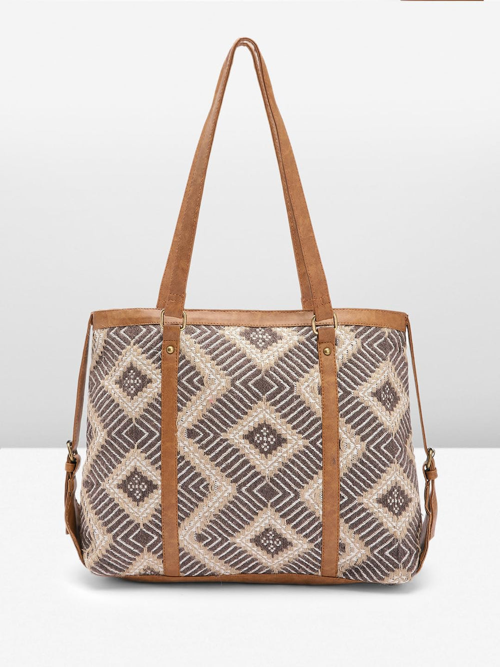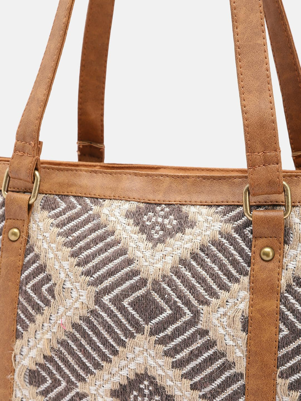 Elevate your style with this exquisite handbag that effortlessly blends fashion and functionality. Crafted with meticulous attention to detail, this tote features a captivating geometric pattern in earthy tones, creating a bohemian vibe that adds a touch of sophistication to any ensemble. The supple faux leather exterior is complemented by sturdy handles, ensuring a comfortable and secure grip. With ample interior space, this bag accommodates your daily essentials with ease, making it an ideal companion for work, travel, or a casual day out. Embrace the allure of this versatile tote and elevate your look with a touch of effortless elegance.