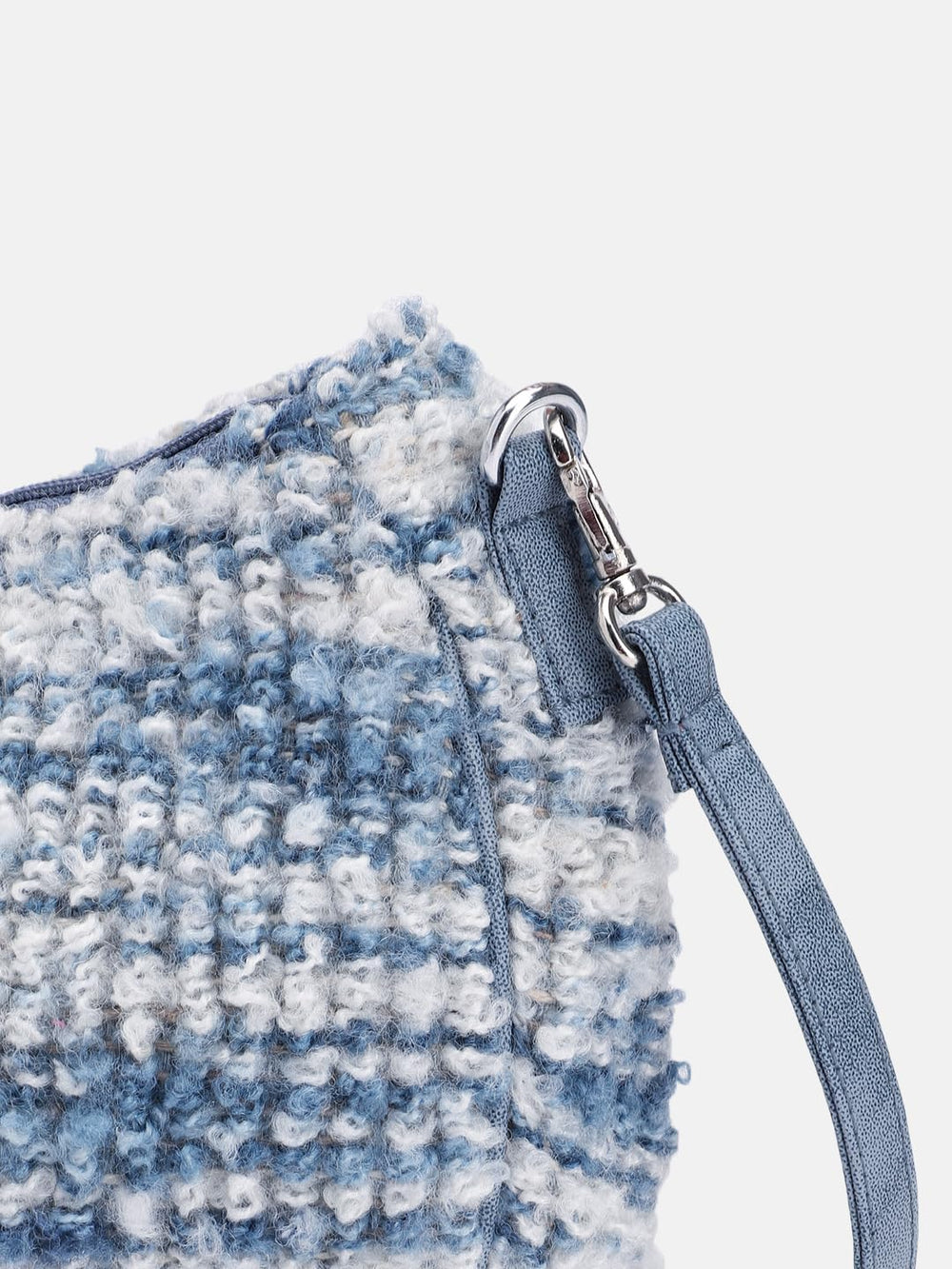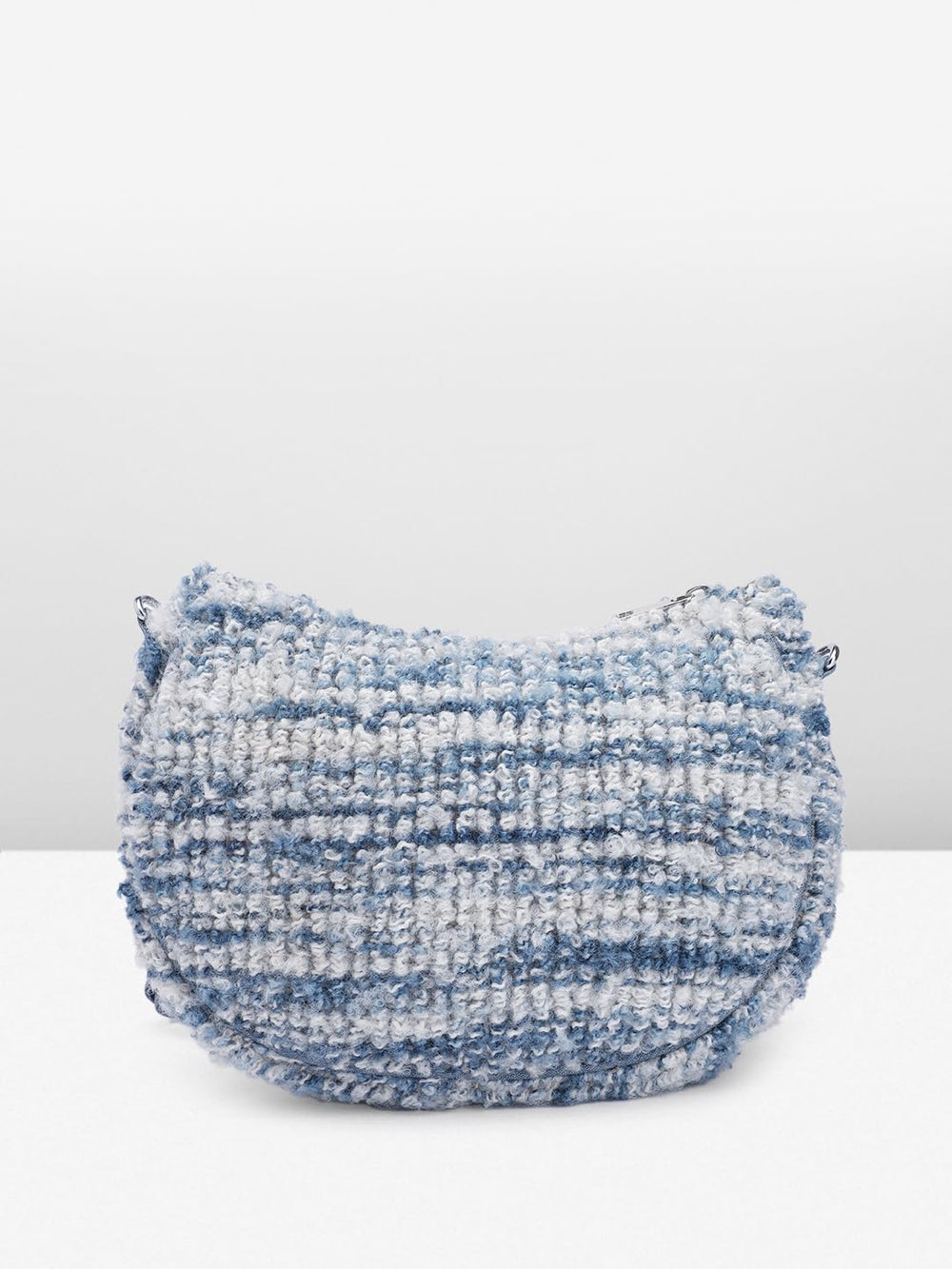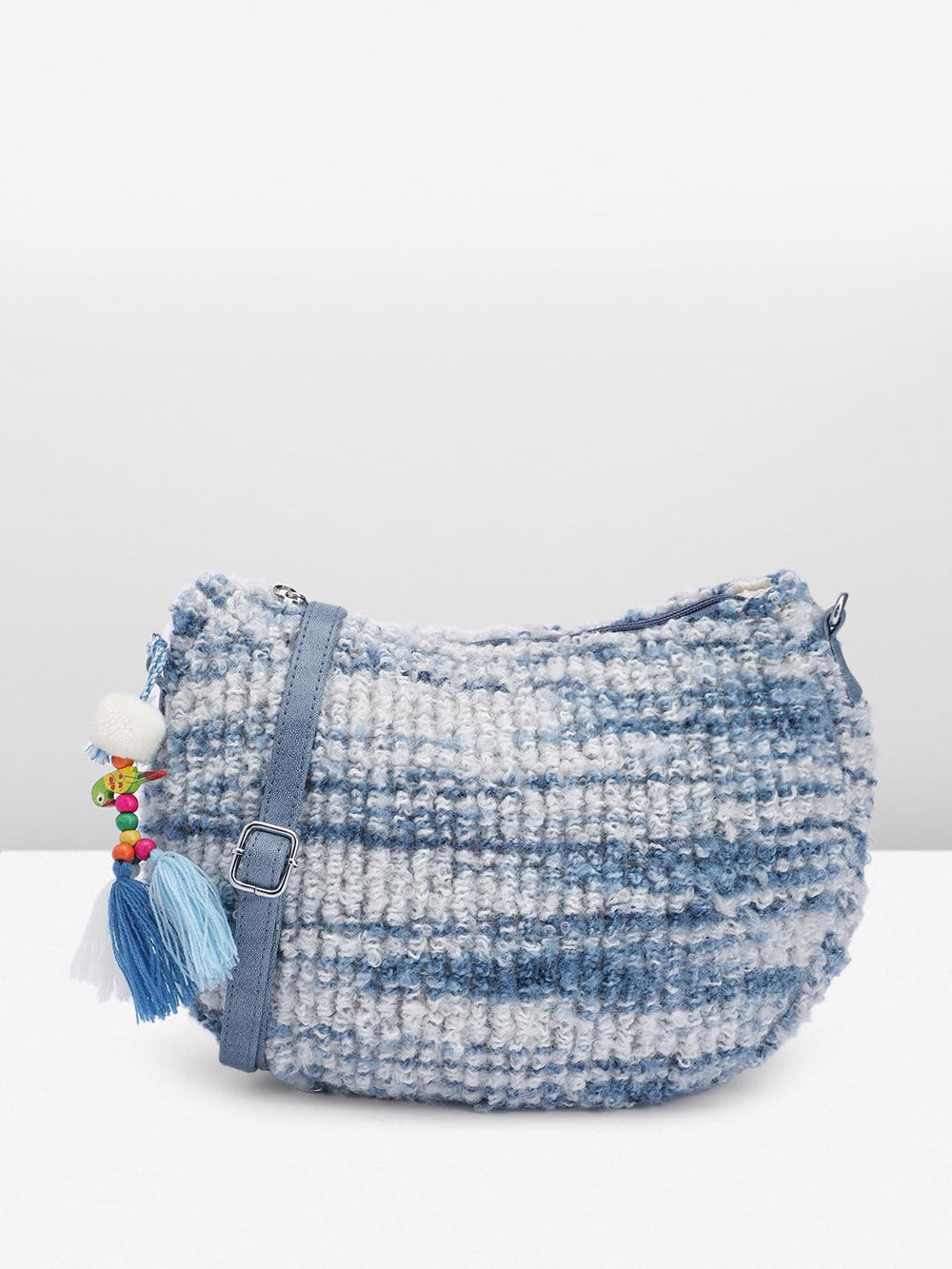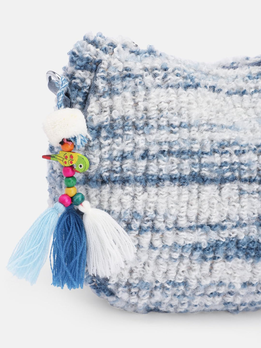 This stylish and cosy handmade crochet handbag is perfect for any occasion. Crafted with care, it features a vibrant blue and white striped pattern that adds a touch of whimsy to your ensemble. The soft yarn material ensures a comfortable carry, while the tassel and pom-pom accents lend a playful flair. With its roomy interior and secure buckle closure, this bag offers ample space for your essentials. Lightweight yet durable, it's an ideal companion for everyday adventures or a night out. Embrace the charm of handcrafted fashion with this delightful crochet handbag, a statement piece that blends functionality with artisanal flair.