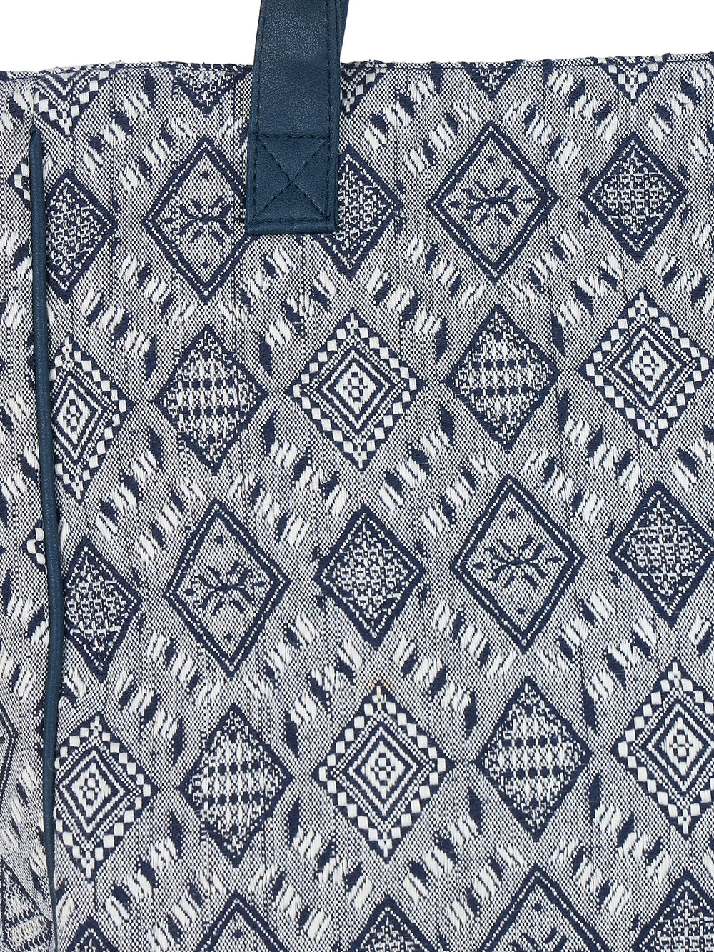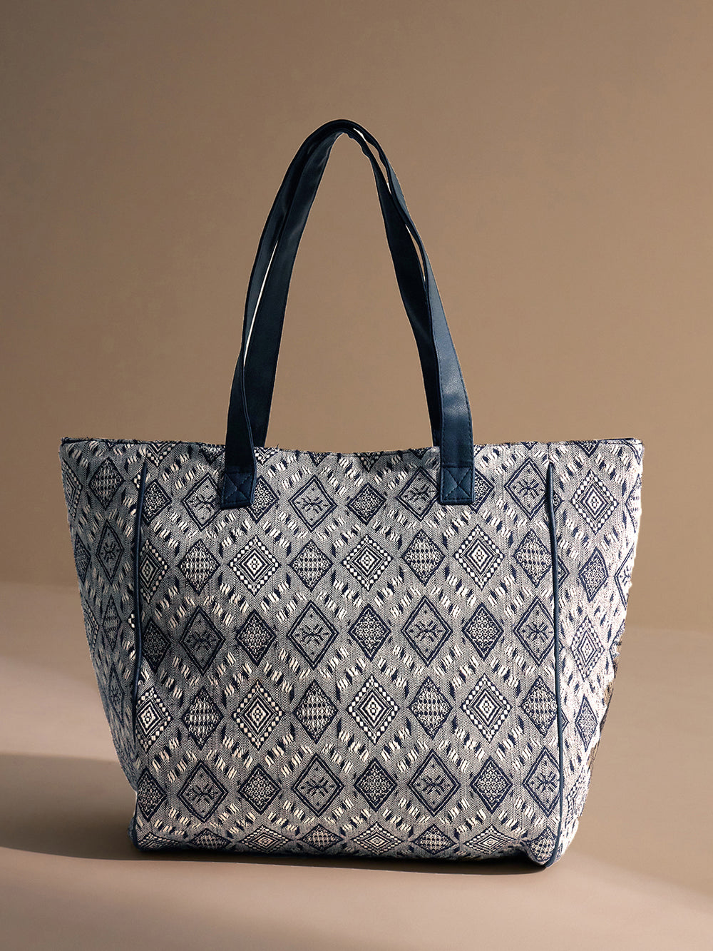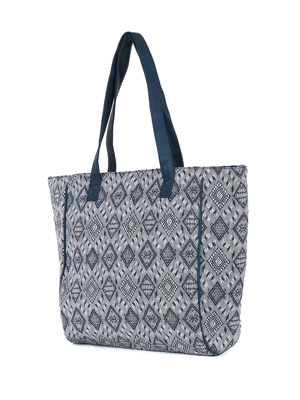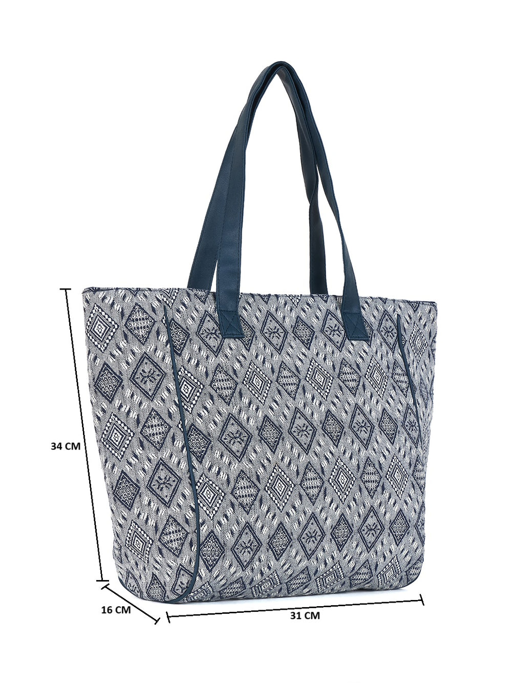 PRIMROSE Large Canvas Tote Bag, Grey and Navy Diamond Pattern, Geometric Print Shopping Shoulder Bag