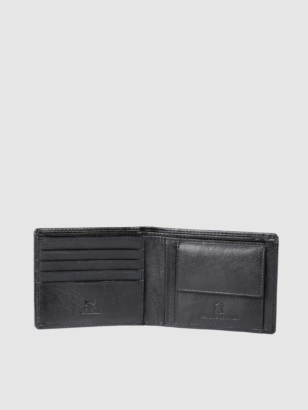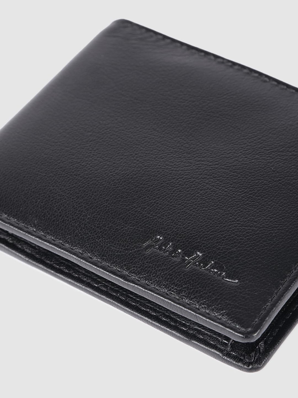 Elevate your everyday carry with this sophisticated bi-fold wallet crafted from premium leather in classic black. The slim design offers a perfect balance of style and functionality, easily sliding into your pocket without creating unsightly bulges. This wallet features a traditional bi-fold construction that opens to reveal thoughtfully organised compartments for your cards and currency. The sleek black leather exterior exudes timeless elegance while developing a unique patina over time. Perfect for the modern gentleman who appreciates minimalist design without compromising on practicality. The refined stitching detail and superior craftsmanship ensure lasting durability for daily use. Whether you're heading to a business meeting or casual outing, this wallet seamlessly complements any attire while keeping your essentials organised and accessible. The compact yet spacious design makes it an ideal choice for those who prefer a streamlined silhouette without sacrificing storage capacity.