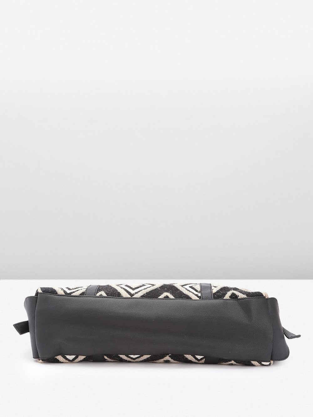 Elevate your style with this chic and versatile handbag. Crafted with a striking geometric pattern in contrasting black and beige hues, it exudes a bohemian flair that effortlessly complements any ensemble. The spacious interior offers ample room for your daily essentials, while the sturdy construction ensures lasting durability. Whether you're heading to the office or exploring the city, this handbag is the perfect accessory to elevate your look with a touch of sophistication. Featuring adjustable shoulder straps for added comfort and convenience, it seamlessly blends fashion and functionality. Embrace the allure of this eye-catching handbag and make a statement wherever you go.