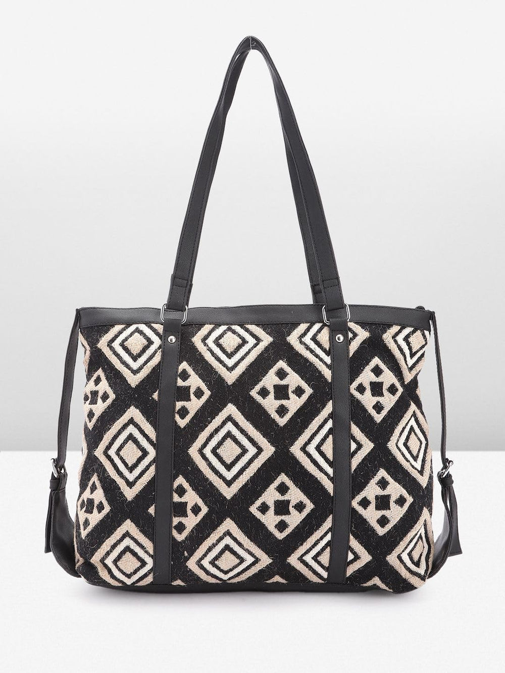 PRIMROSE Patterned Black and White Tote Bag Geometric Diamond Design