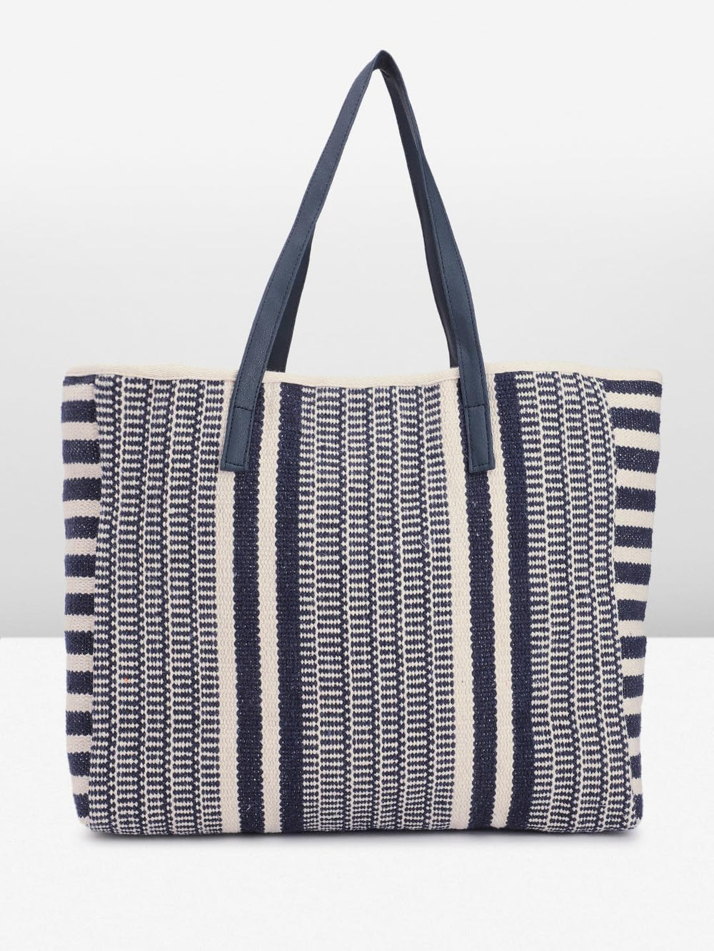 This stylish tote bag is a versatile accessory that effortlessly combines fashion and functionality. Crafted with a durable woven fabric, it features a striking monochrome pattern in shades of navy and cream. The spacious interior offers ample room for carrying your daily essentials, while the sturdy handles provide a comfortable grip. Whether you're running errands or heading to the office, this tote bag is a chic and practical choice that will elevate your look. Its timeless design ensures it will remain a staple in your wardrobe for seasons to come. Dimensions: 32cm x 37cm x 18cm