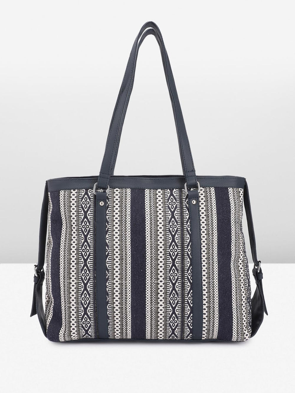 This stylish tote bag is a versatile and practical accessory for women. Crafted with a striking geometric pattern in black and white, it features a spacious interior that can accommodate all your daily essentials. The sturdy handles allow for comfortable carrying, while the durable construction ensures long-lasting use. Whether you're running errands or heading to the office, this tote bag effortlessly combines fashion and functionality. Its chic design complements various outfits, making it a go-to choice for the modern, on-the-go woman. With its ample storage capacity and eye-catching aesthetic, this tote bag is a must-have for those seeking both style and convenience.