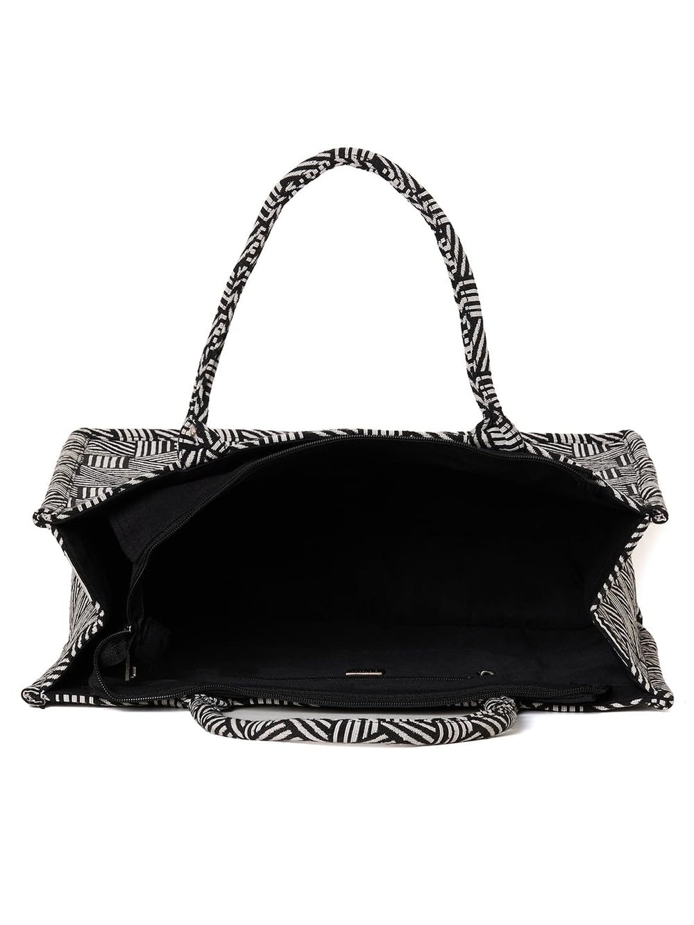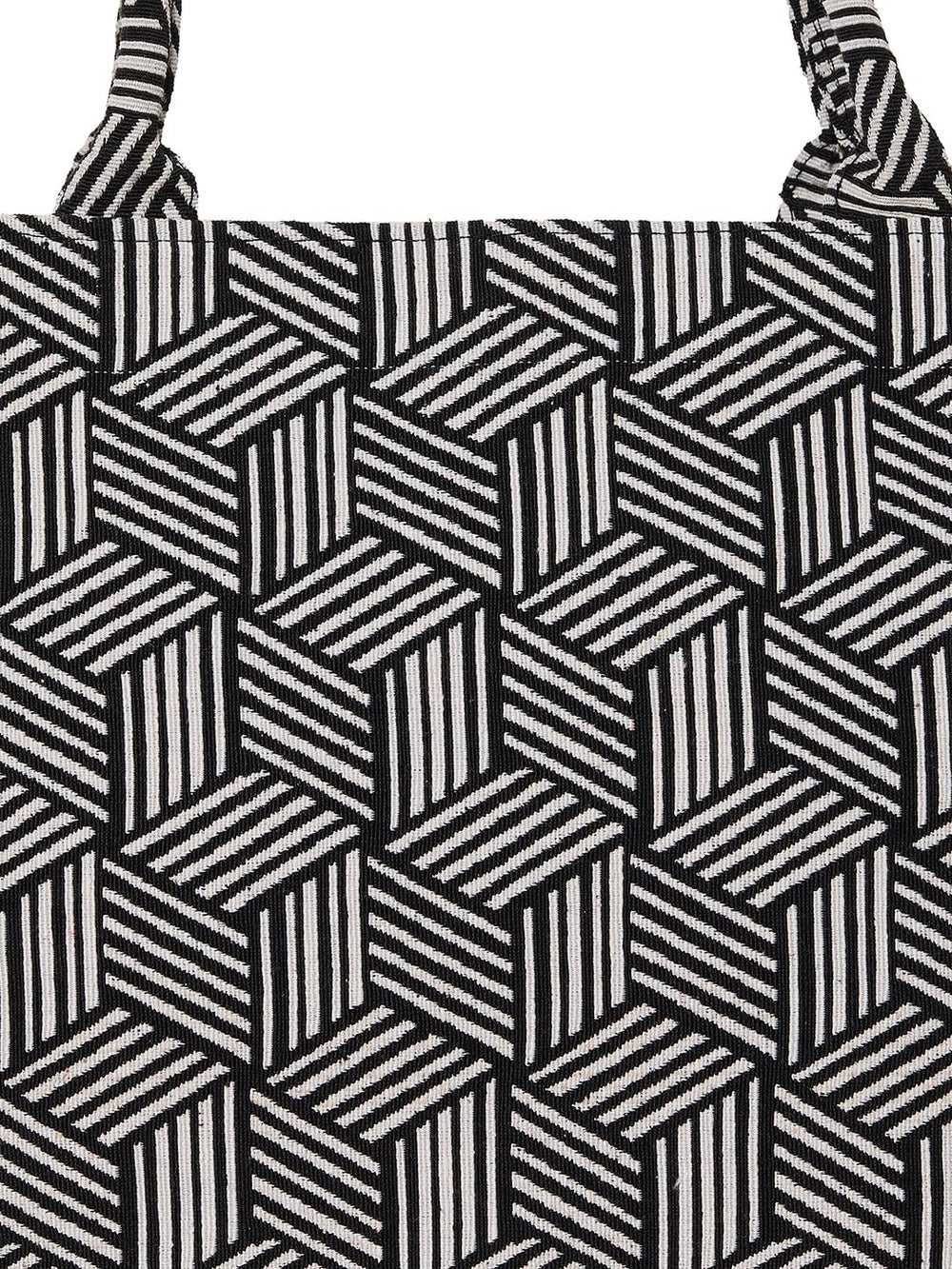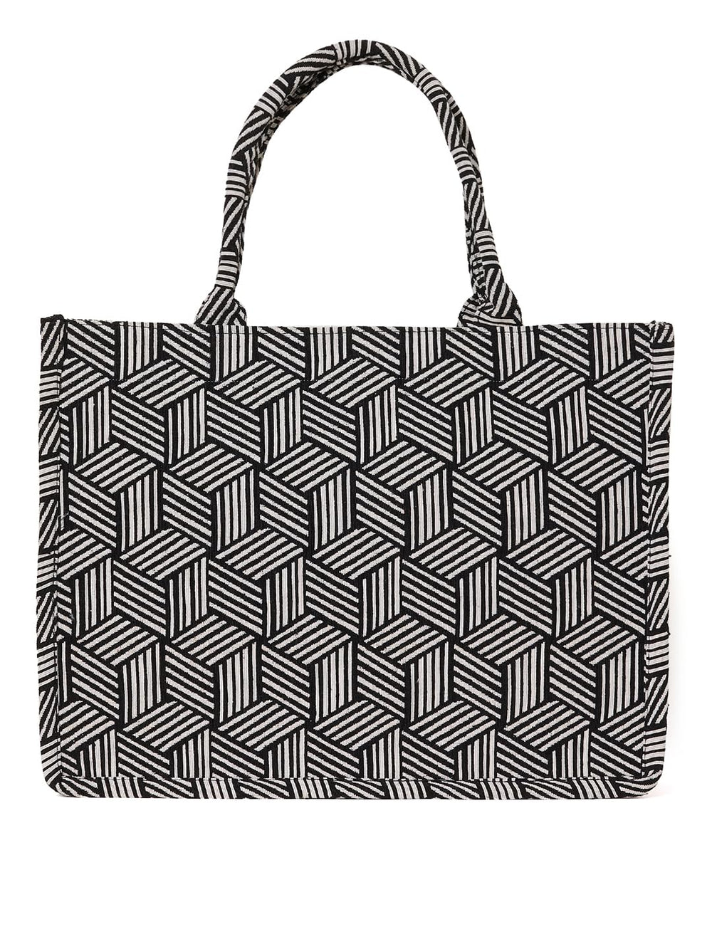 Elevate your style with this chic and versatile handbag. Crafted with meticulous attention to detail, it features a striking geometric pattern in black and white hues, creating a captivating visual appeal. The spacious interior offers ample room for your essentials, making it an ideal companion for any occasion. With its sturdy construction and comfortable handles, this handbag seamlessly blends fashion and functionality. Whether you're heading to the office or enjoying a day out, this stylish accessory will effortlessly complement your ensemble. Embrace timeless elegance and make a bold statement with this must-have handbag.