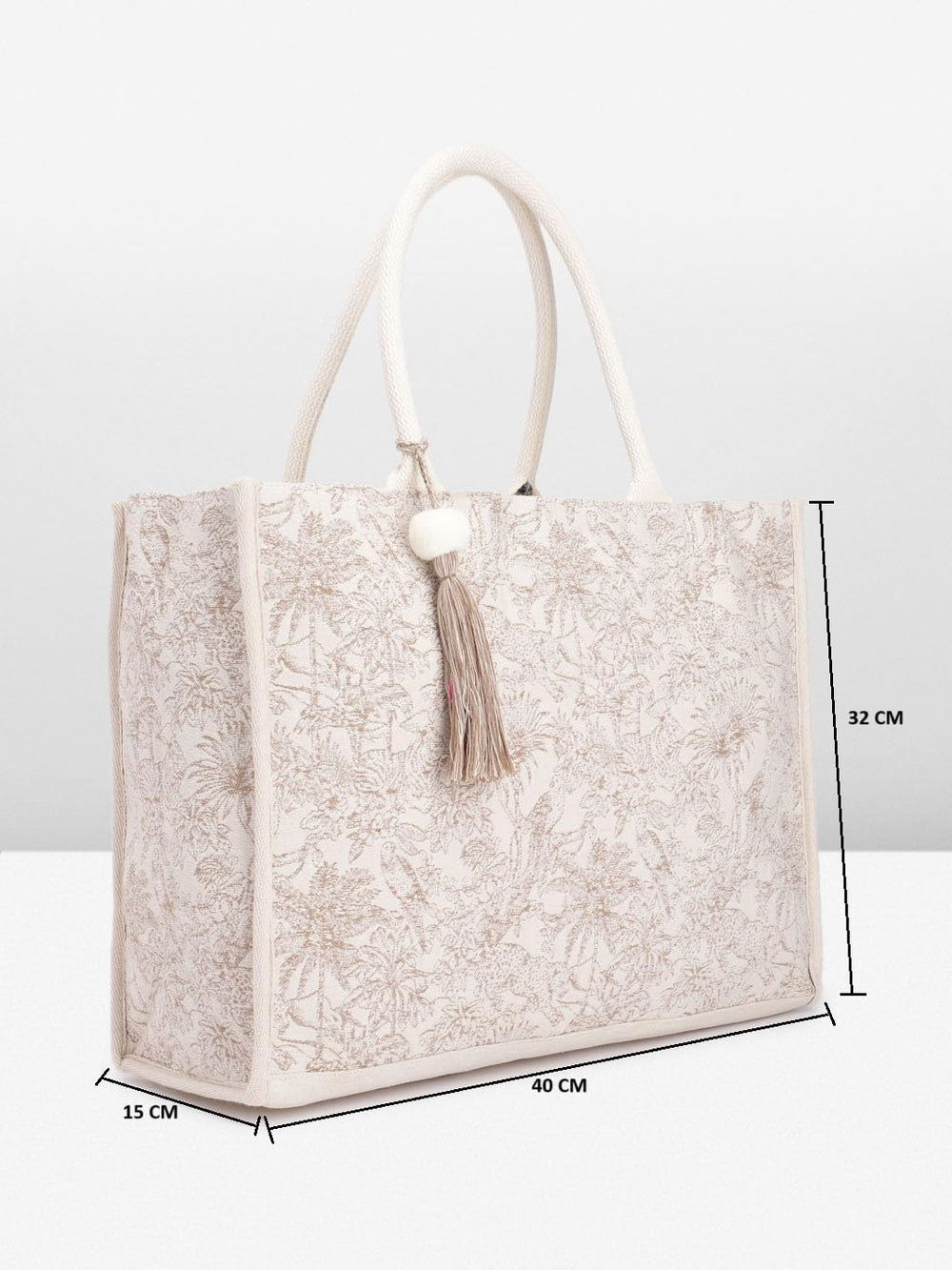 Elevate your style with this exquisite handcrafted tote bag. Crafted from premium materials, it boasts a captivating floral pattern that exudes timeless elegance. The spacious interior offers ample room for your daily essentials, while the sturdy handles ensure comfortable carrying. Adorned with a delicate tassel, this bag effortlessly blends sophistication with functionality. Whether for a casual outing or a formal event, this tote will undoubtedly become your go-to accessory, adding a touch of refined charm to any ensemble. Embrace the perfect fusion of fashion and practicality with this meticulously designed masterpiece.