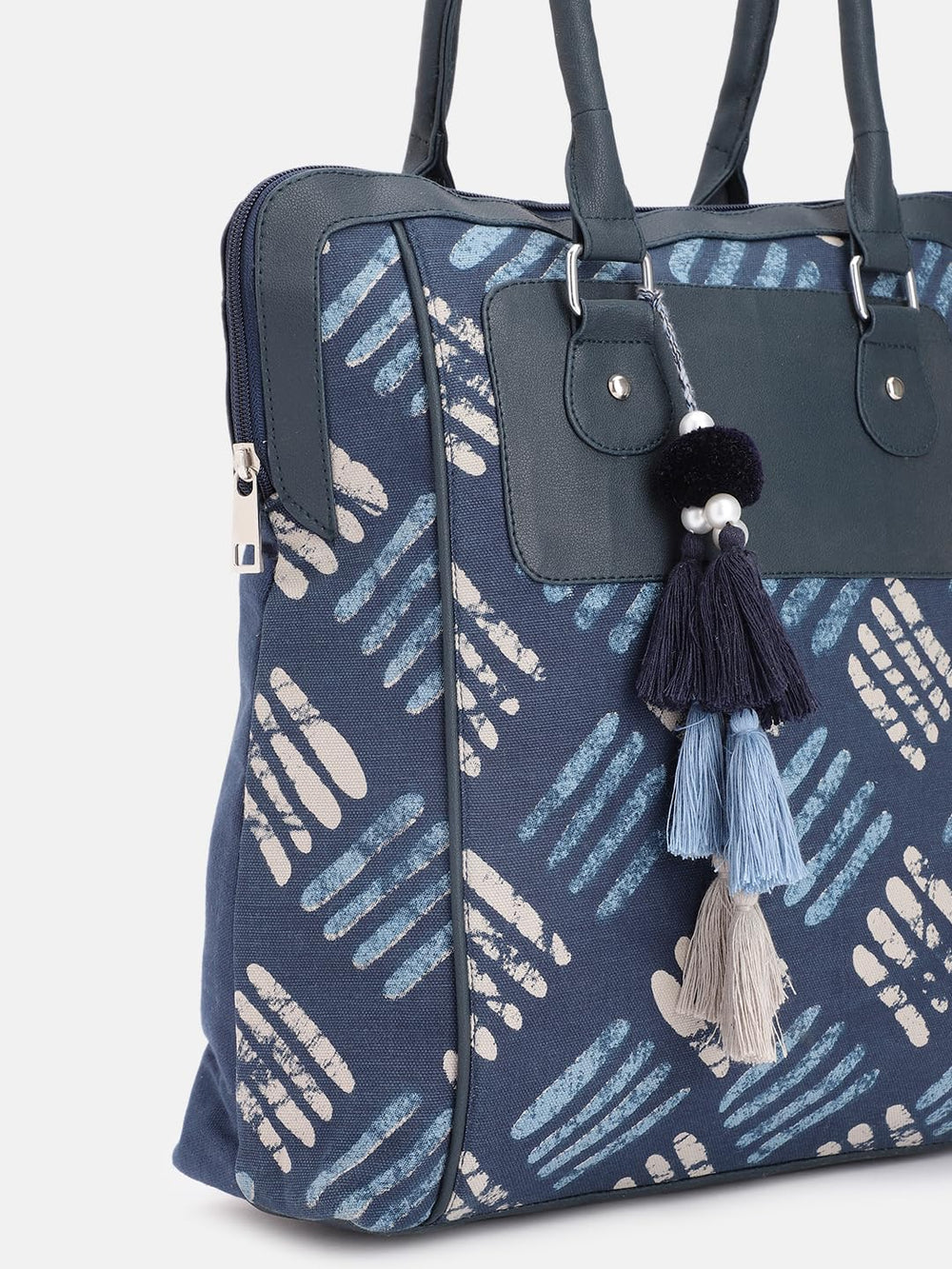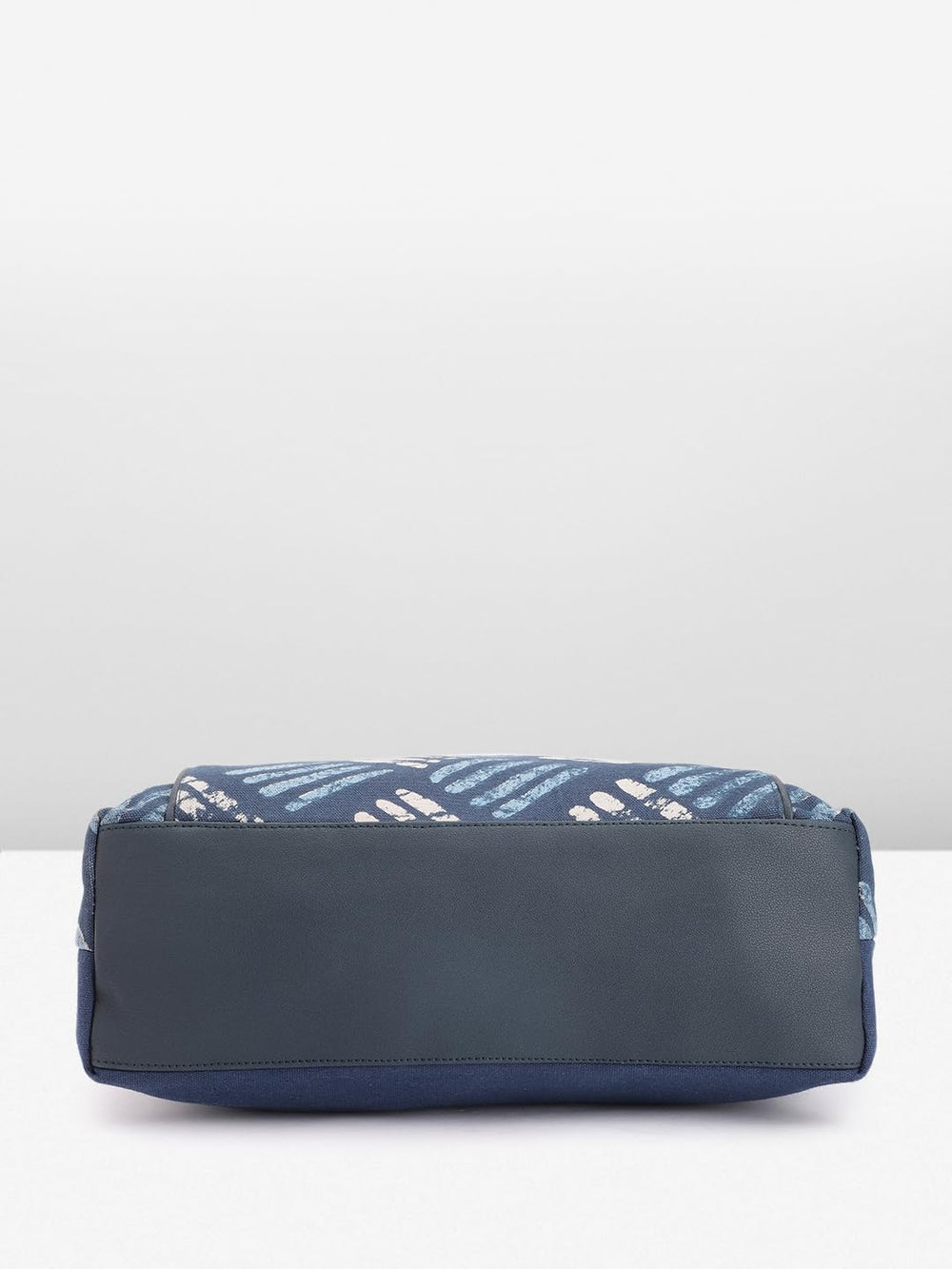 This chic and stylish handbag for women is a true statement piece. Crafted with premium leather, it features a striking abstract pattern in shades of navy blue, grey, and beige. The spacious interior compartment offers ample room for all your essentials, while the dual top handles provide a comfortable grip. Elevate your ensemble with this eye-catching tote that effortlessly blends fashion and functionality. Pair it with your favourite outfit for a touch of sophistication wherever you go. Dimensions: 35 cm x 31 cm x 10 cm.