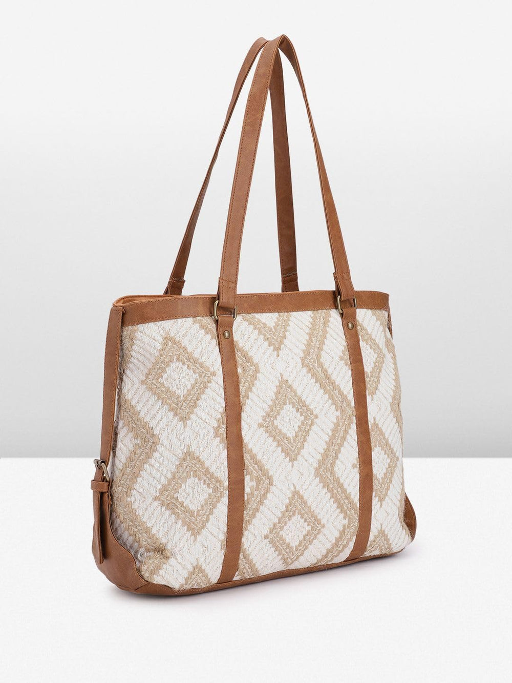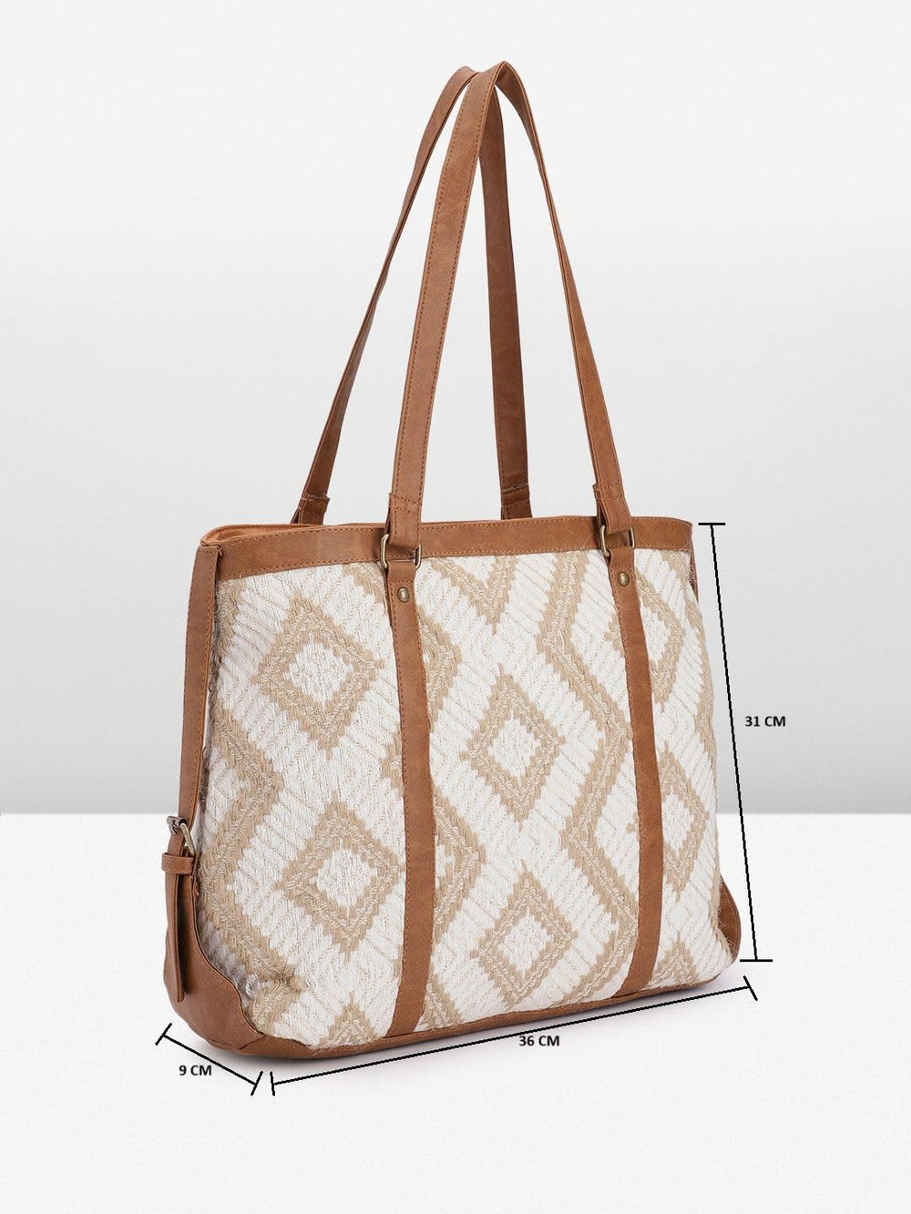Elevate your style with this chic and versatile handbag for women. Crafted with a timeless diamond pattern in a neutral beige hue, it effortlessly blends sophistication and functionality. The spacious interior offers ample room for your daily essentials, while the sturdy leather handles and accents provide durability. Whether you're heading to the office or a casual outing, this handbag is the perfect companion, adding a touch of elegance to any ensemble. Embrace the perfect fusion of fashion and practicality with this must-have accessory.