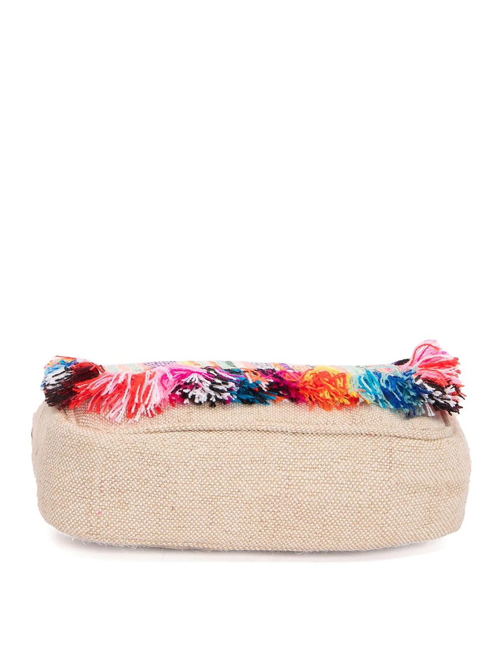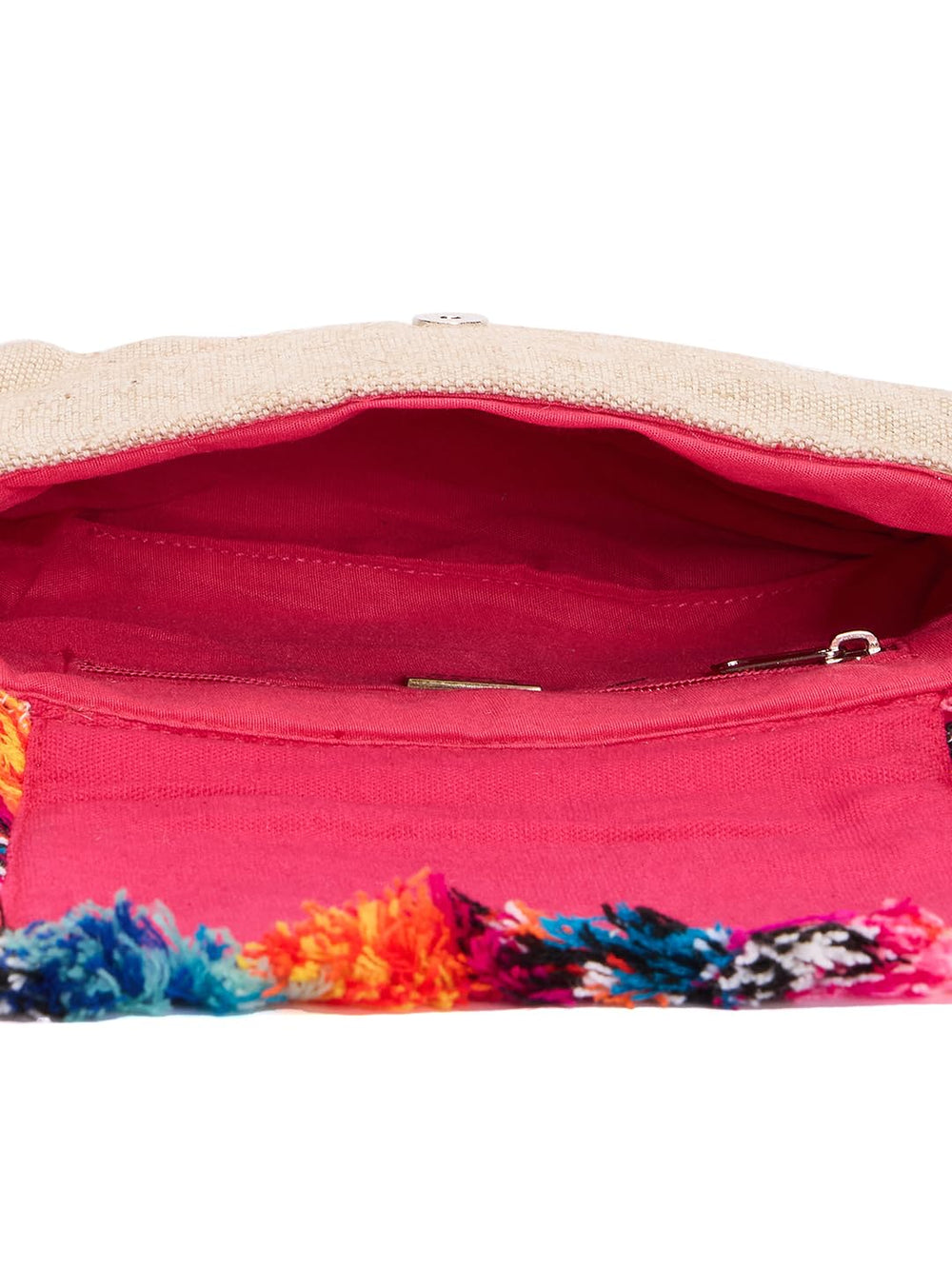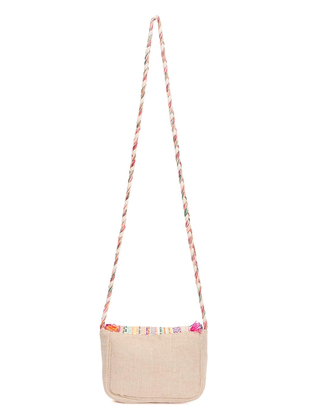 Elevate your style with this charming bohemian crossbody bag featuring a vibrant woven pattern adorned with multicoloured geometric motifs and stripes. The distinctive design showcases playful fringe trim in rainbow hues along the edges, adding movement and artistic flair. Crafted with a cotton fabric blend, this bag comes with a beautifully braided shoulder strap that allows for comfortable wear. The compact size (13 x 18 x 4 cm) makes it perfect for carrying daily essentials, while the secure zipper closure keeps your belongings safe. The bag features one main compartment and an inner pocket for organisation. Its versatile design makes it an ideal accessory for casual outings, festivals, or holiday wear. The artisanal-inspired details and vibrant colour palette make this bag a standout piece that effortlessly combines traditional craftsmanship with contemporary style. Whether paired with casual attire or festival wear, this crossbody bag adds a delightful bohemian touch to any ensemble.