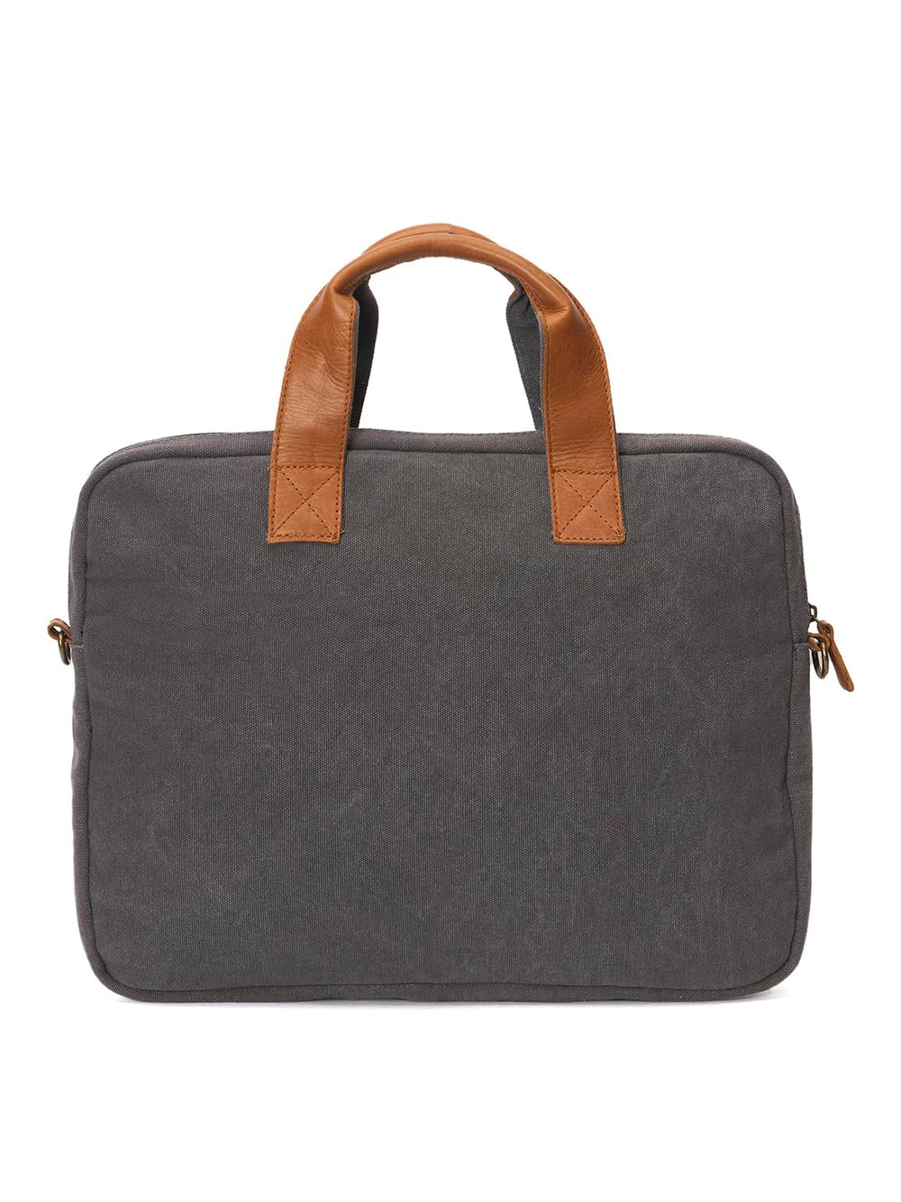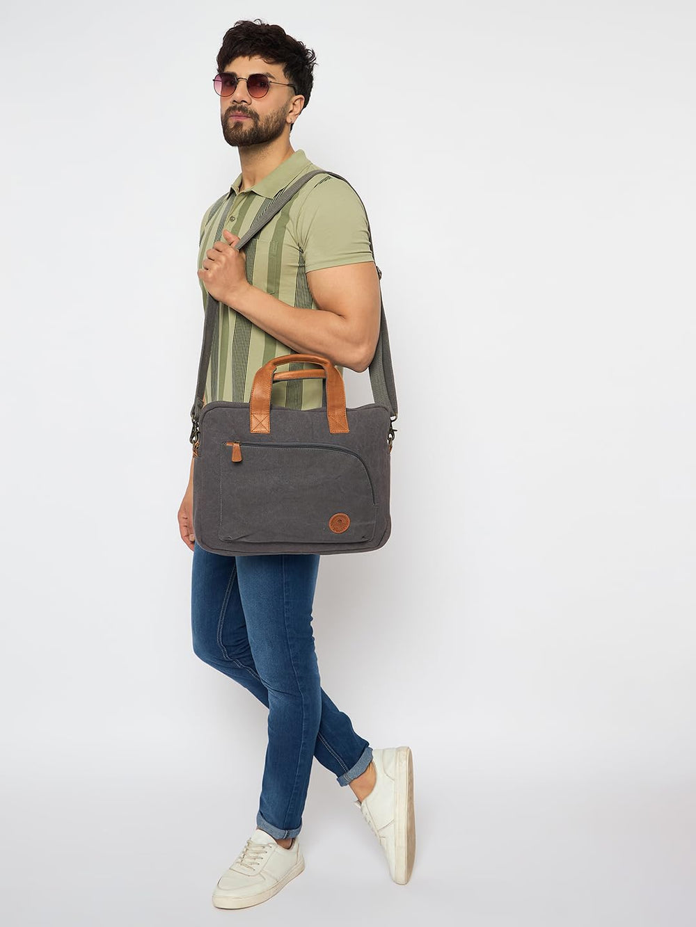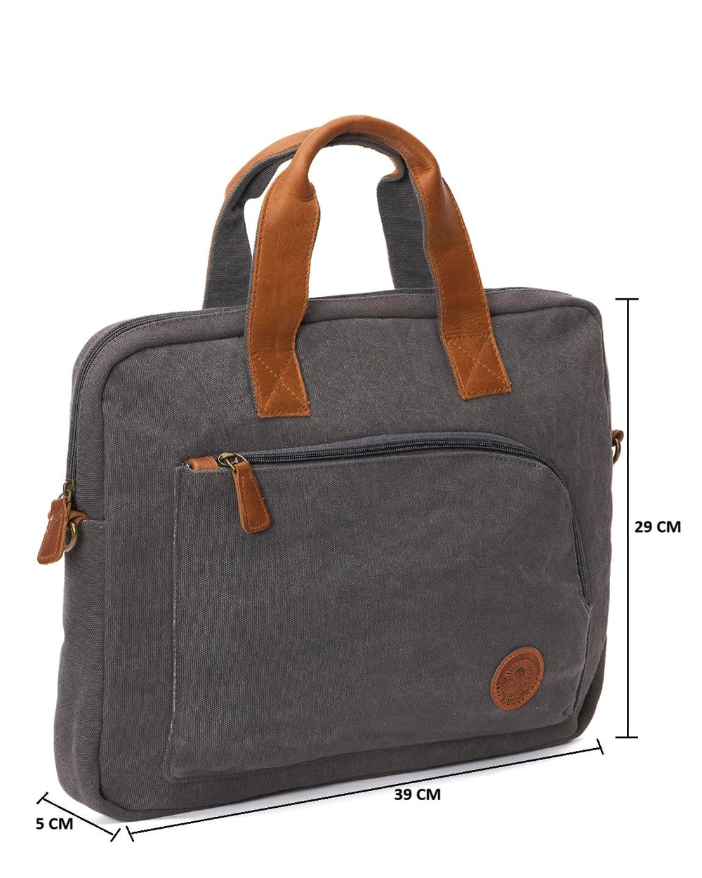 RIMROCK Canvas Laptop Messenger Bag with Leather Handles, Grey, Adjustable Shoulder Strap