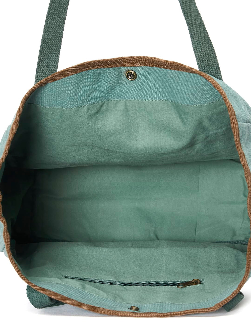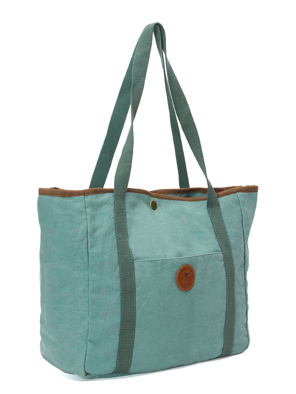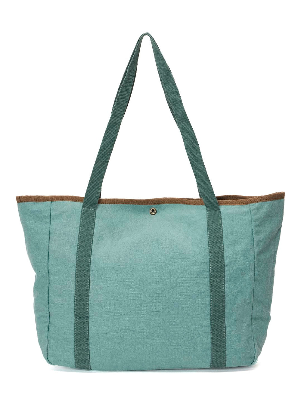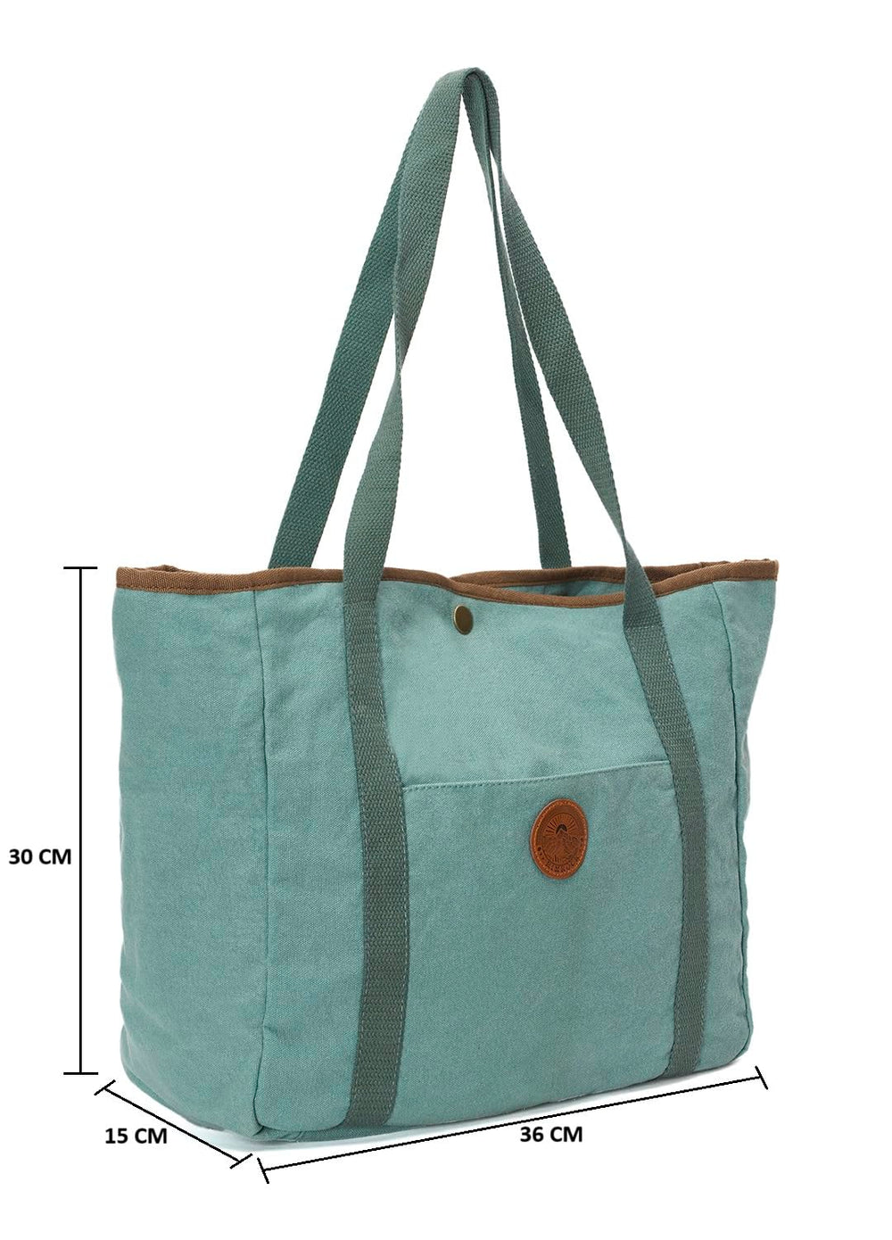 RIMROCK Canvas Tote Bag, Large Capacity, Mint Green with Brown Trim, Shoulder Straps