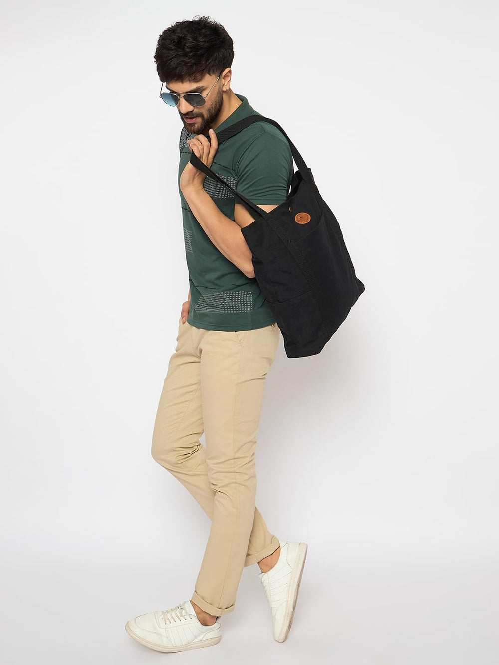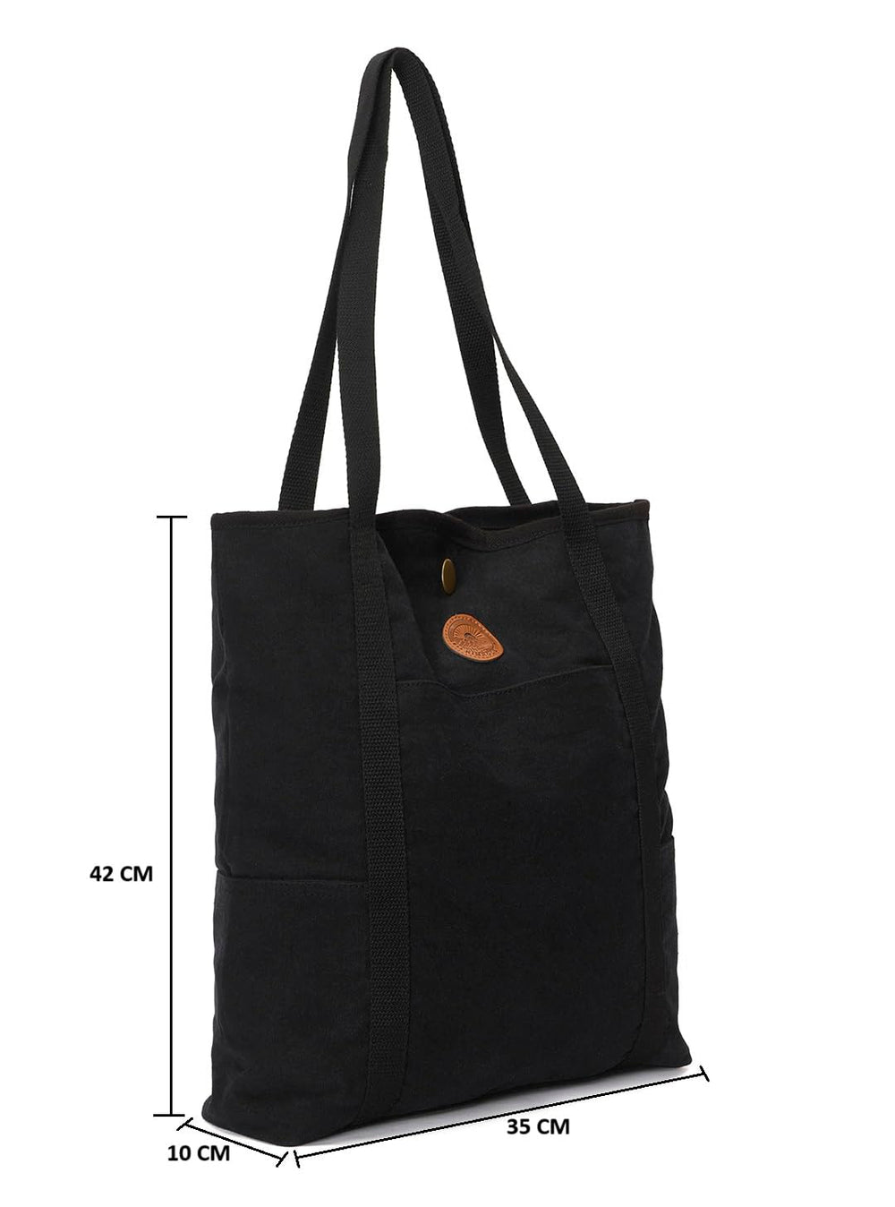 RIMROCK Canvas Tote Bag with Multiple Pockets, Black, Long Shoulder Straps