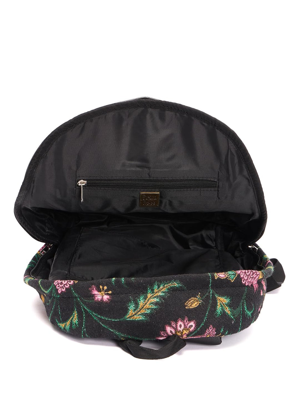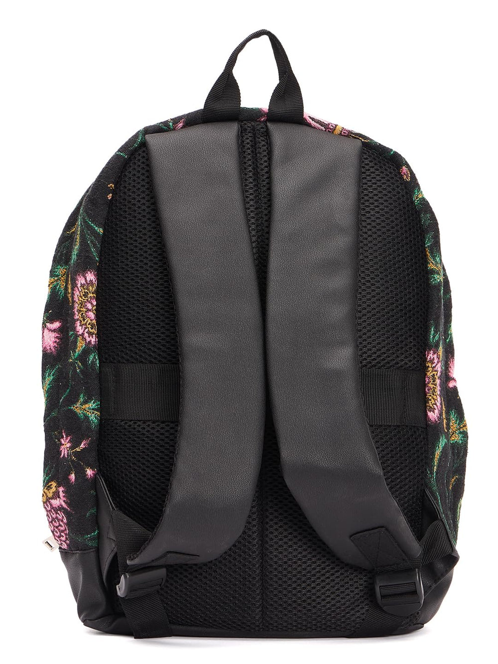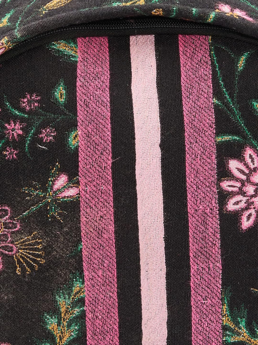 Make a stylish statement with this eye-catching floral print backpack. The black canvas backdrop serves as the perfect canvas for delicate pink and golden flowers, complemented by elegant green foliage details. Three distinctive pink stripes add a contemporary touch to the classic design, creating a perfect balance between modern and feminine aesthetics. The spacious main compartment, secured with a reliable zipper closure, offers ample storage for your daily essentials. Featuring comfortable adjustable shoulder straps and a durable bottom panel, this backpack combines practicality with fashion-forward design. The contrasting black base adds structure while protecting your belongings. Whether you're heading to college, work, or embarking on a weekend adventure, this versatile backpack offers both functionality and sophisticated style. The detailed floral pattern and metallic accents make it a standout accessory for any casual outfit.