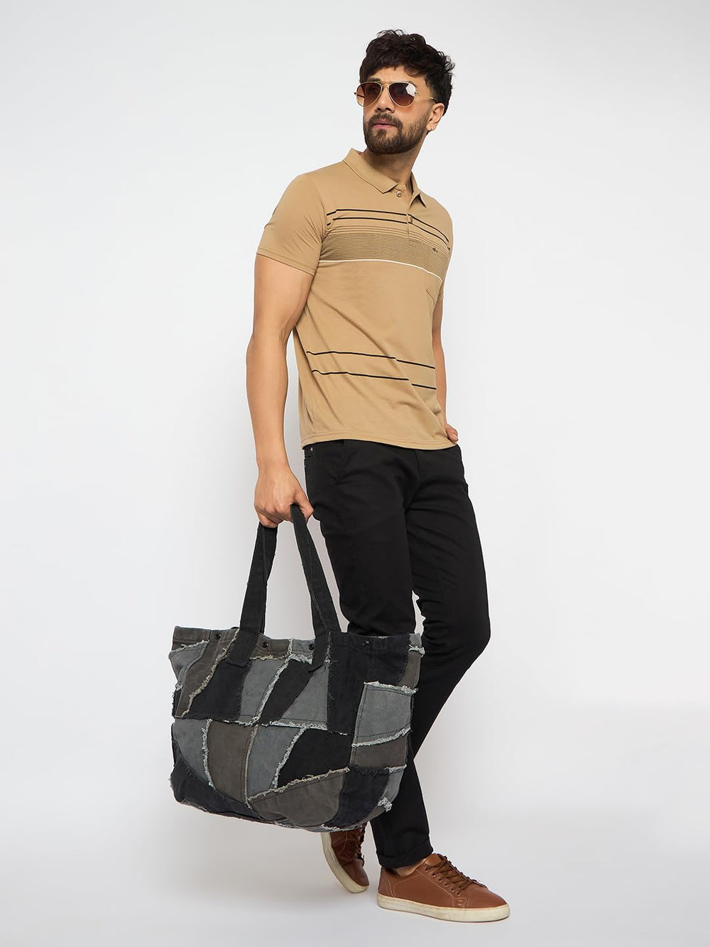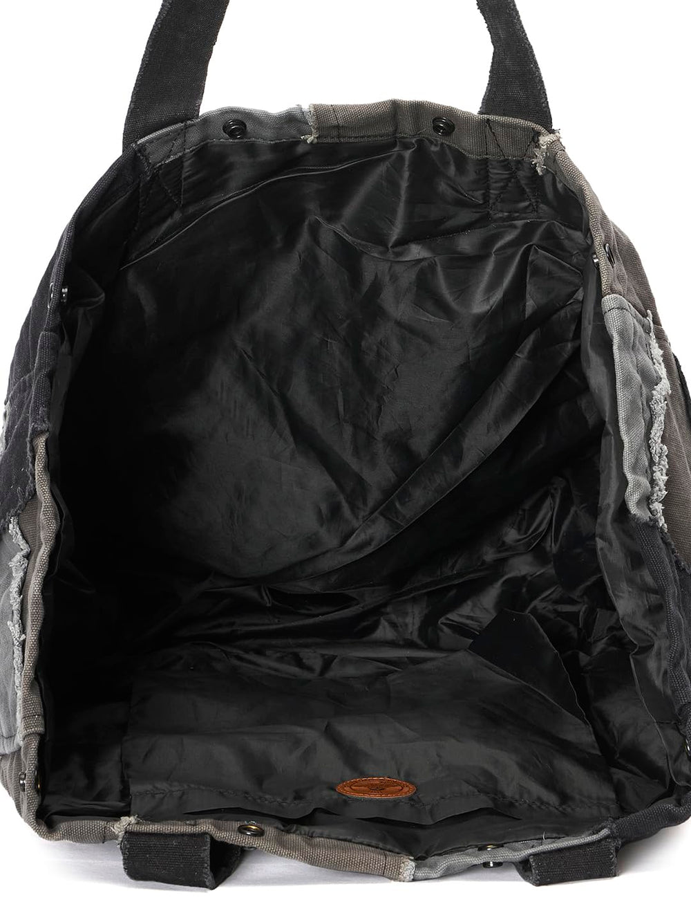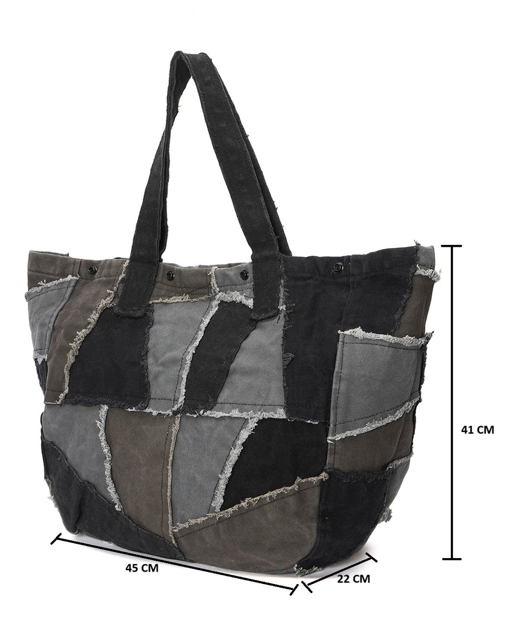 RIMROCK Patchwork Corduroy Tote Bag, Large Casual Shoulder Bag, Black and Grey