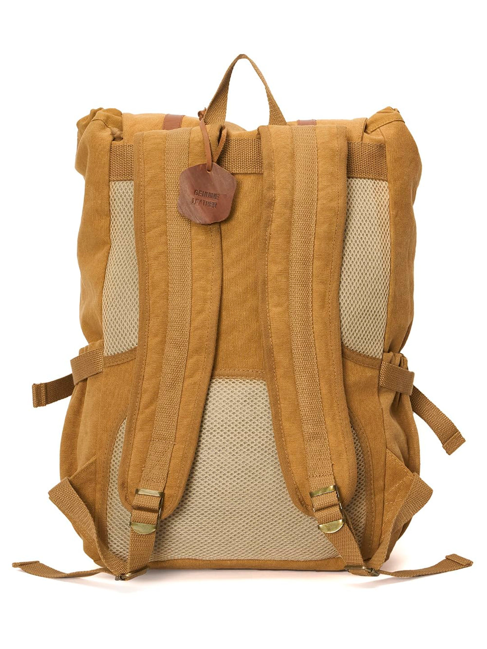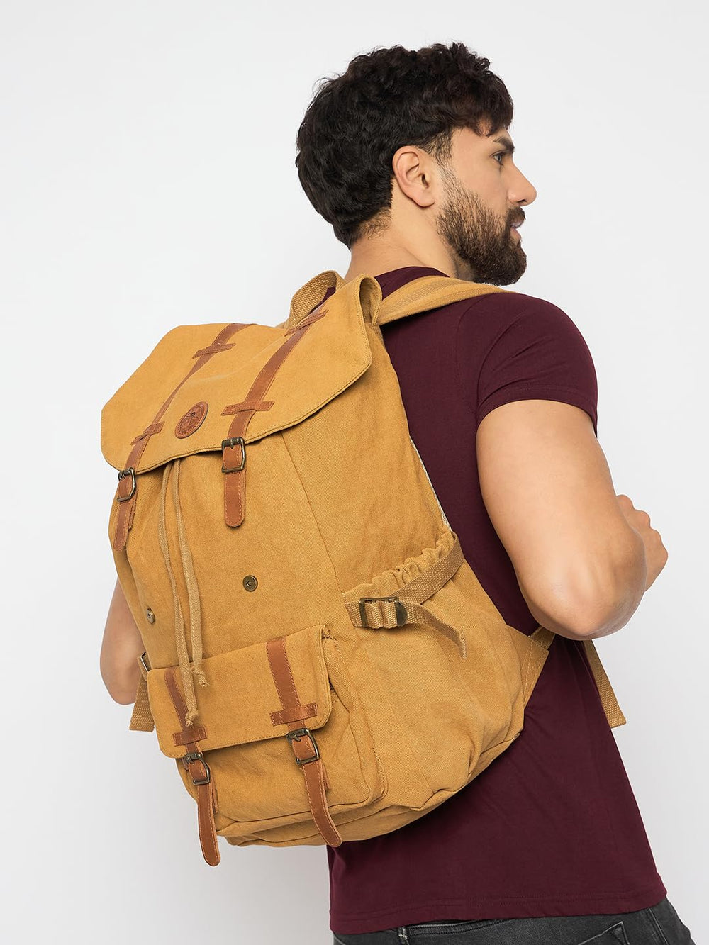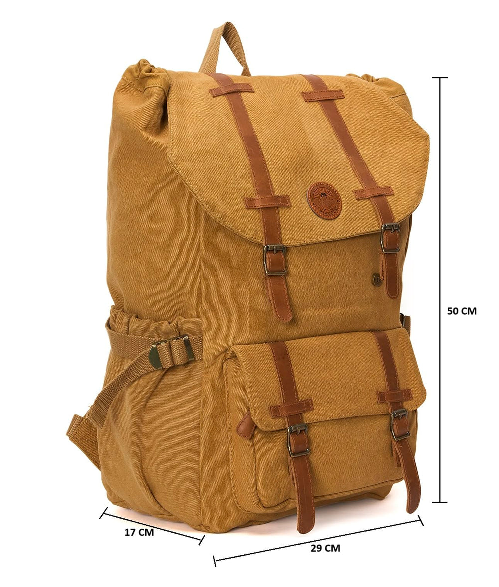 Vintage Canvas Backpack, Large Capacity Rucksack with Leather Straps, Tan Brown For Men's