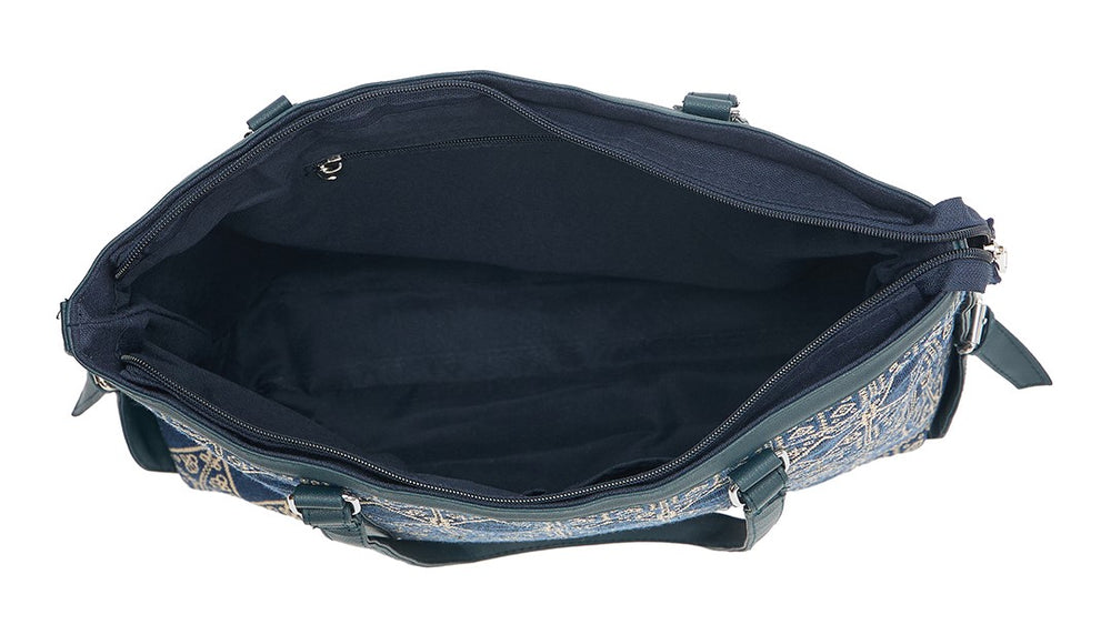 Women's Ethnic Print Tote Bag, Navy Blue and Beige Pattern
